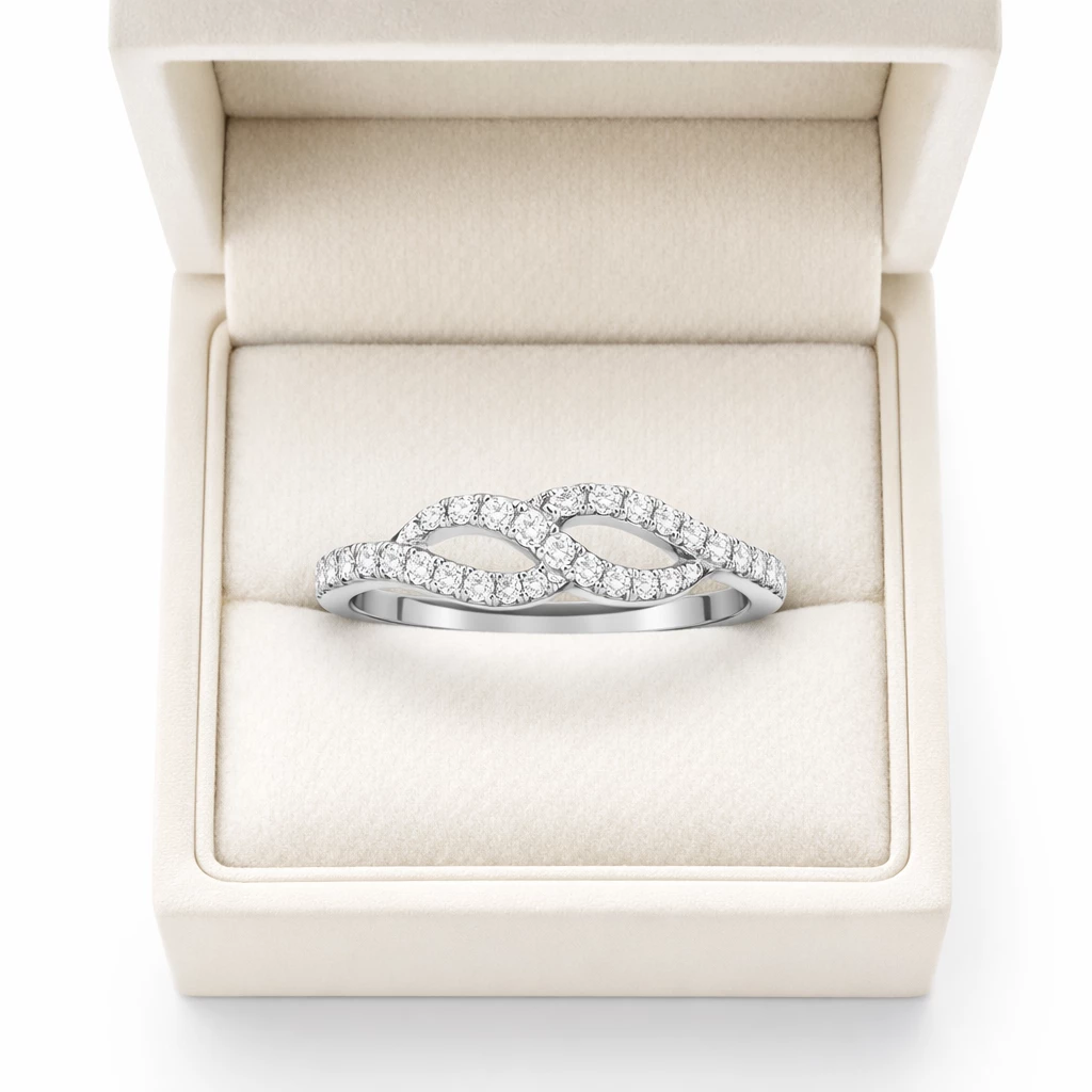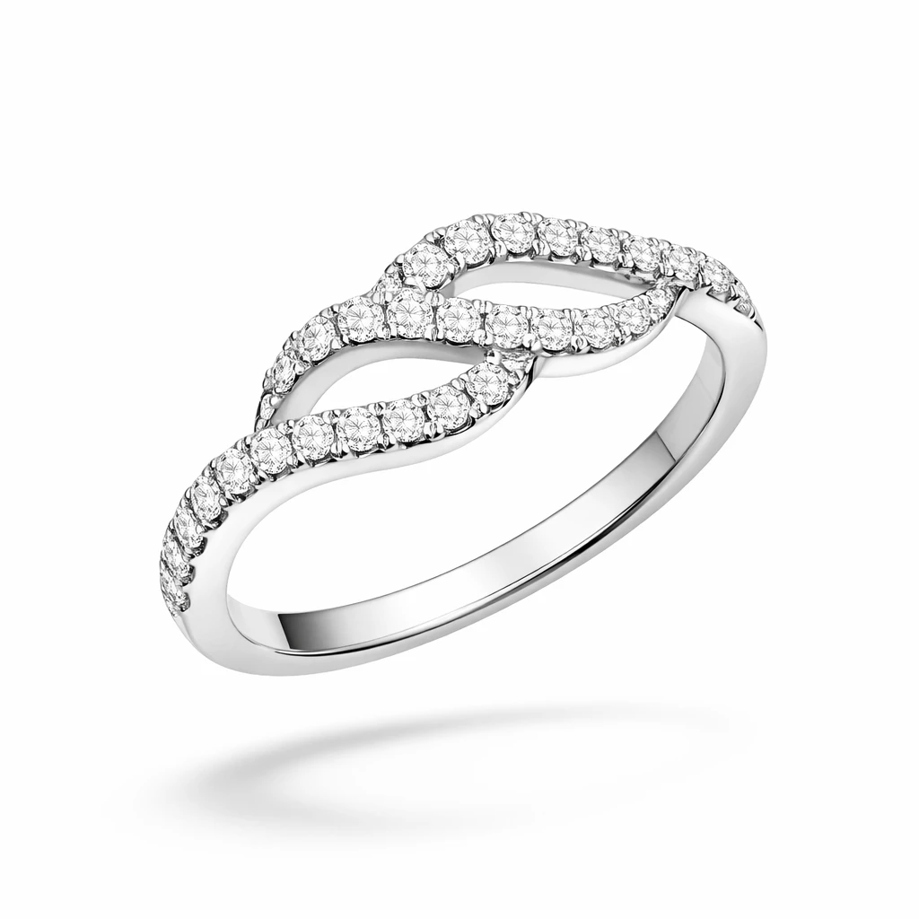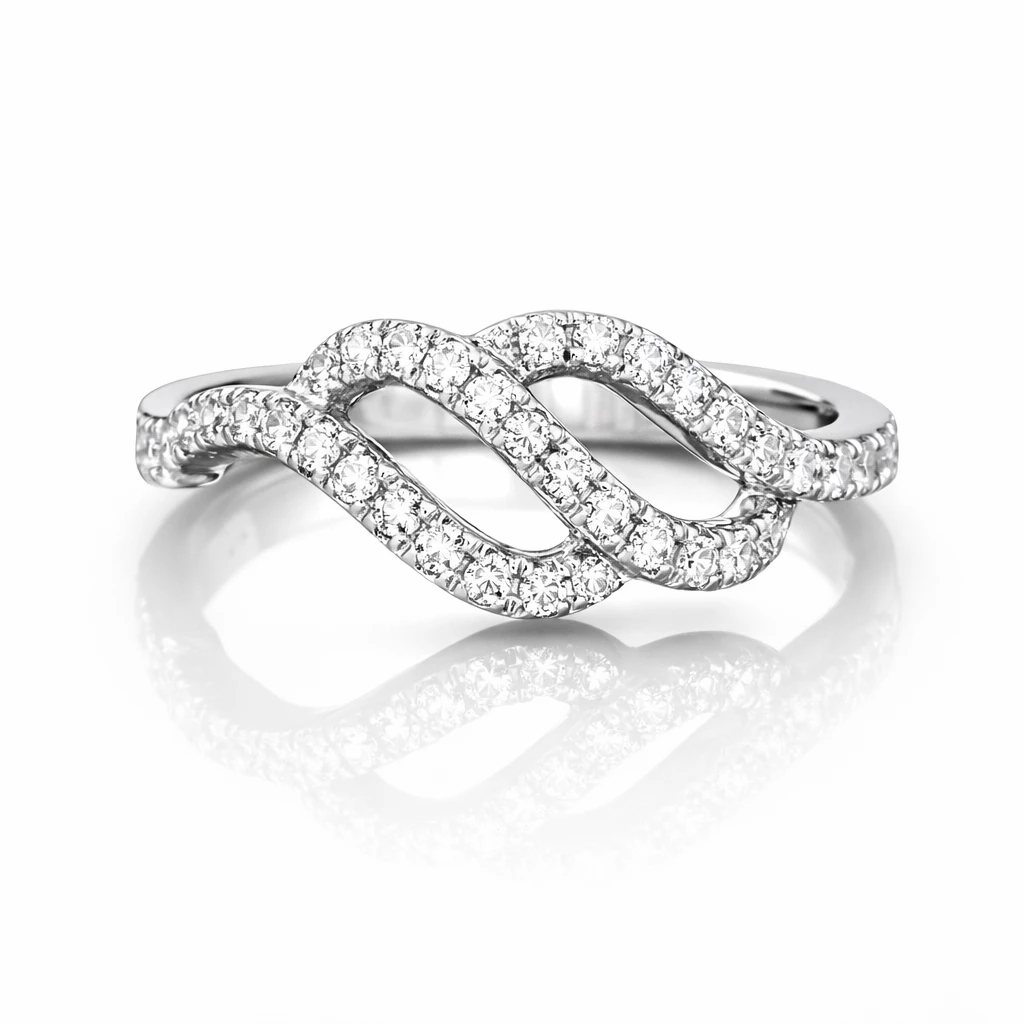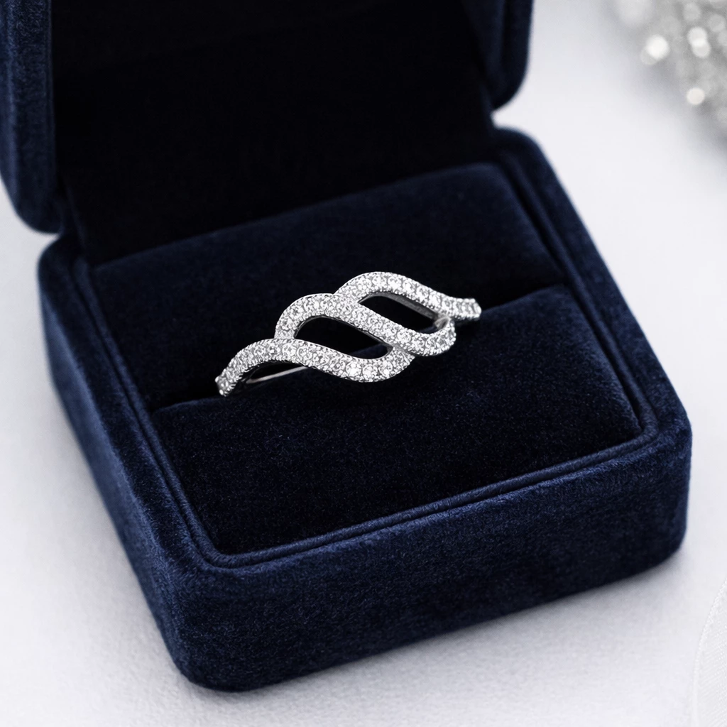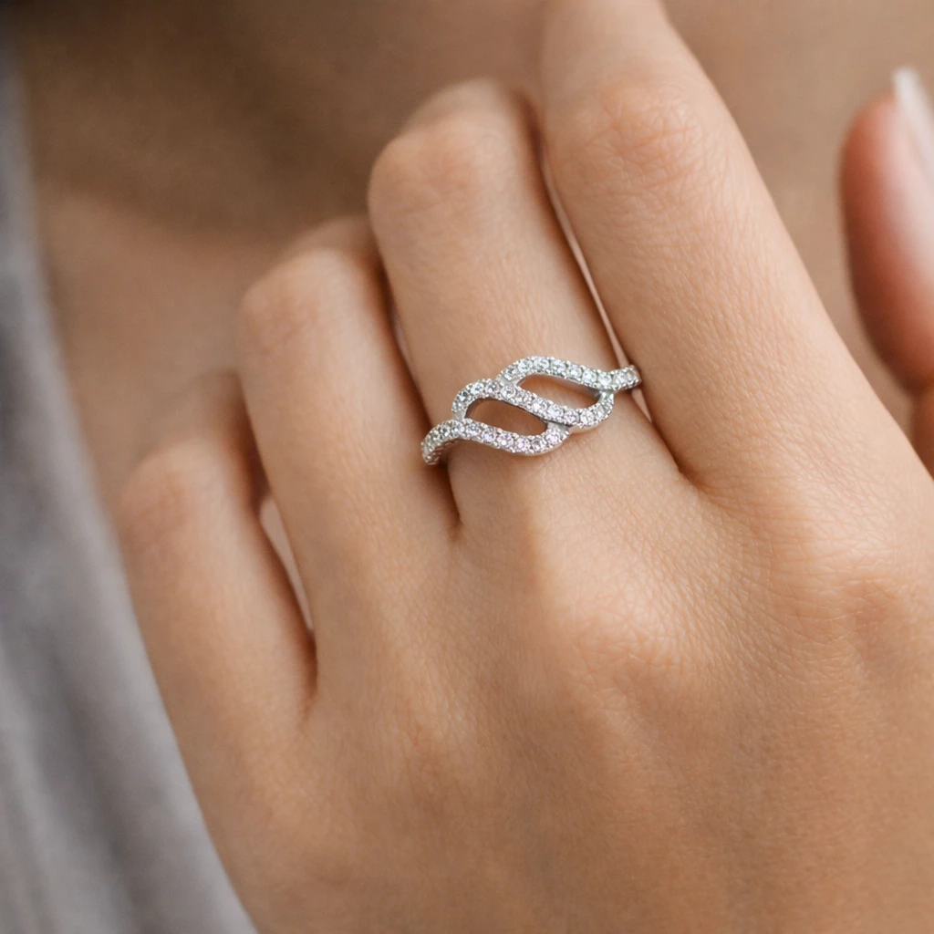 Stříbrný prsten ve tvaru vlnek se třpytivými čirými zirkony.