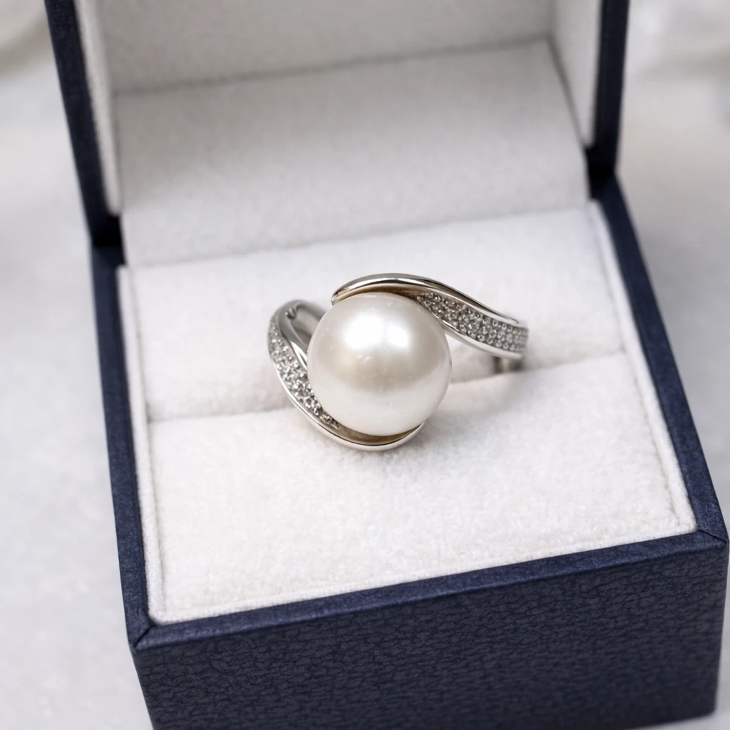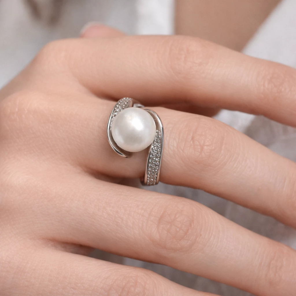 Stříbrný prsten zdobený pravou perlou působí velmi vkusně a elegantně. Část prstenu je zdobena jemnými čirými zirkony, které zaručí krásný třpyt.