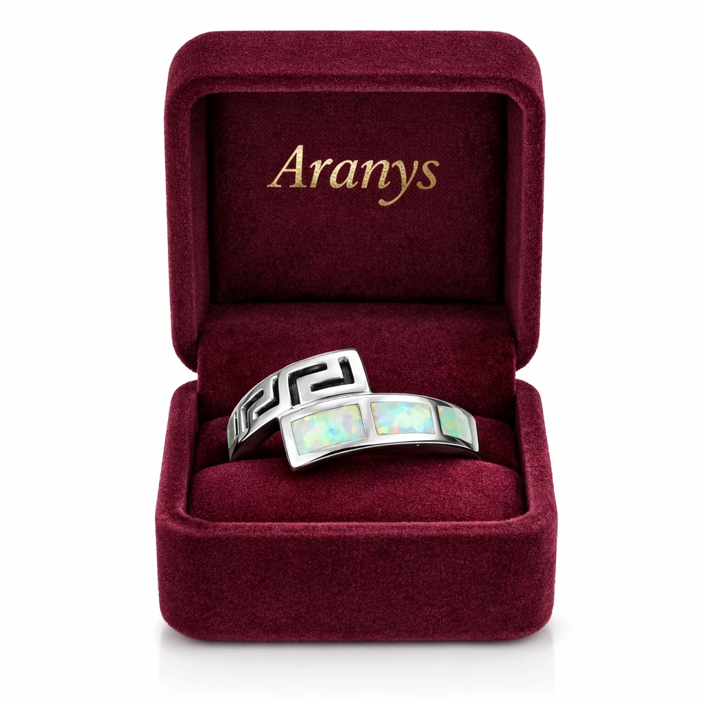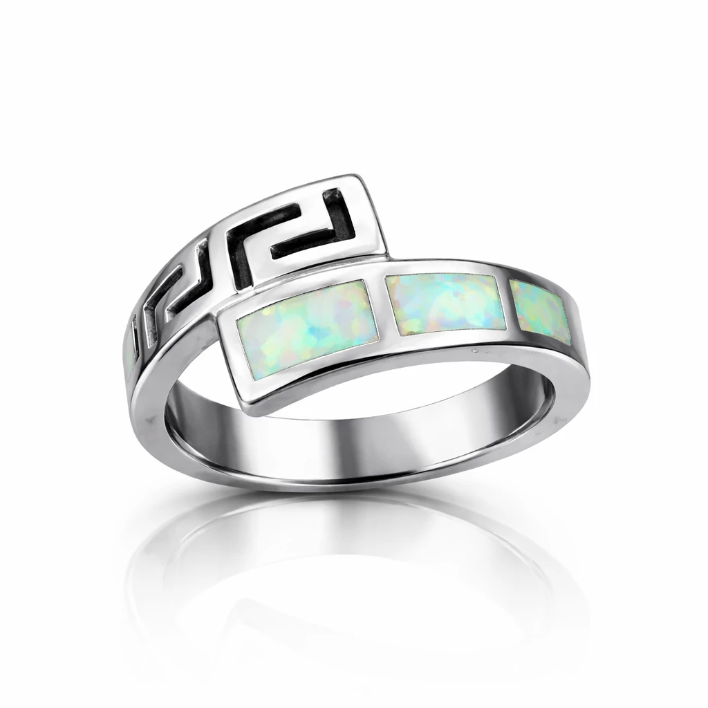 Jemný stříbrný prsten s opálem a řeckým motivem je působivým šperkem, kterým zaujmete své okolí.
