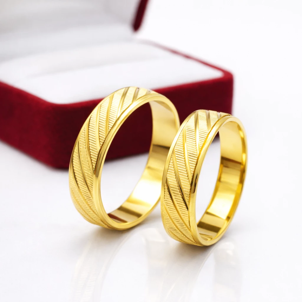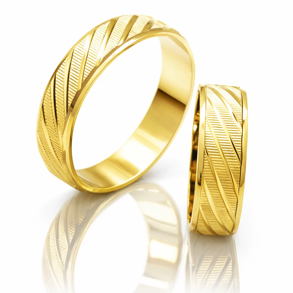 Elegantní stříbrný zlacený snubní prsten vyrobený ze Stříbra Ag 925/1000 vyniká dekorativním rytým vzorem, který dodává šperku osobitý a slavnostní charakter.