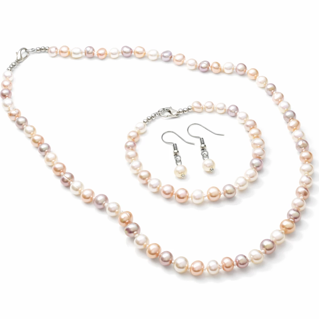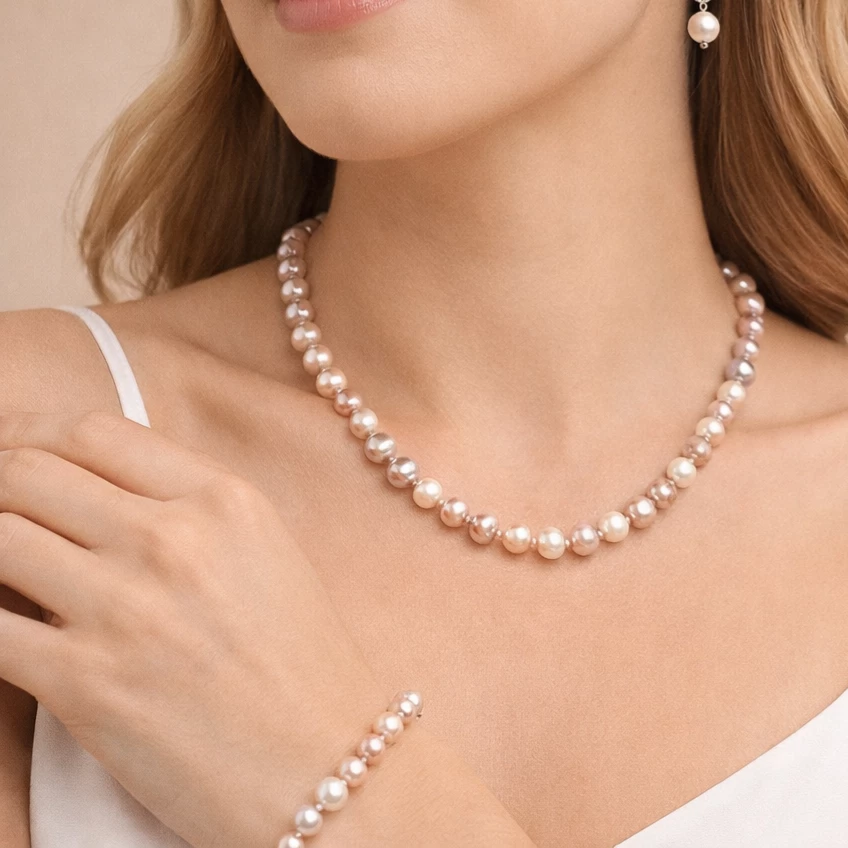Souprava z multicolor říčních perel Mirelle je vyrobena z pravých říčních perel v jemných pastelových odstínech s bižuterními komponenty. Perly zaujmou svou přirozenou hrou barev v tónech růžové, meruňkové, krémové i jemně fialkové, které působí něžně, elegantně a harmonicky.