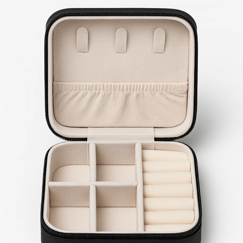 Skvělý tip a originální dárek pro každou ženu. Malá, cestovní šperkovnice v černé barvě. I šperky mají mít svoje místo a šperkovnice je skvělá volba, kam je uložit.