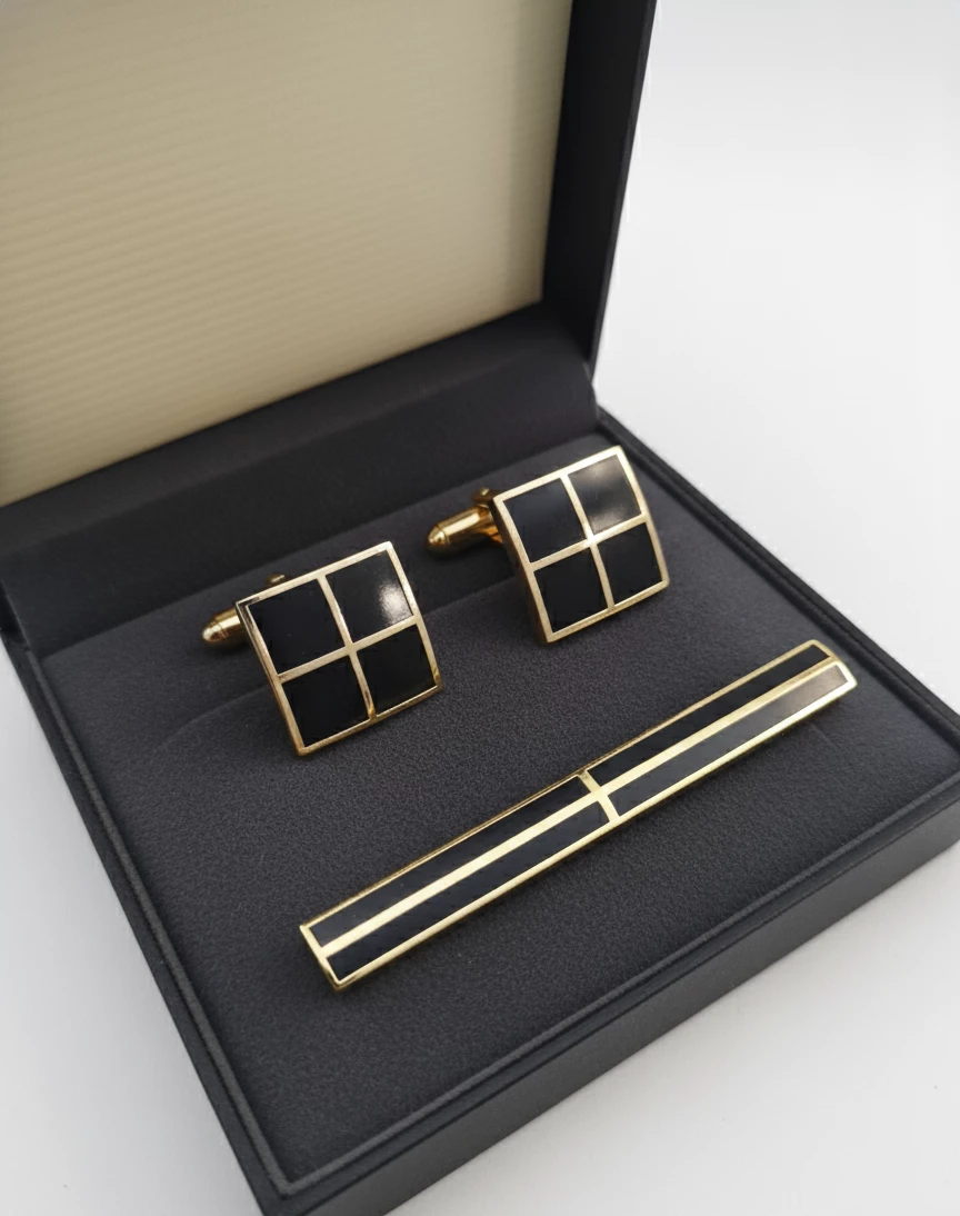 Elegantní souprava tvořená sponou na kravatu a manžetovými knoflíčky je nepostradatelným doplňkem pro všechny úspěšné muže. Velice jednoduše s ní doladíte vhodnou košili i kravatu.