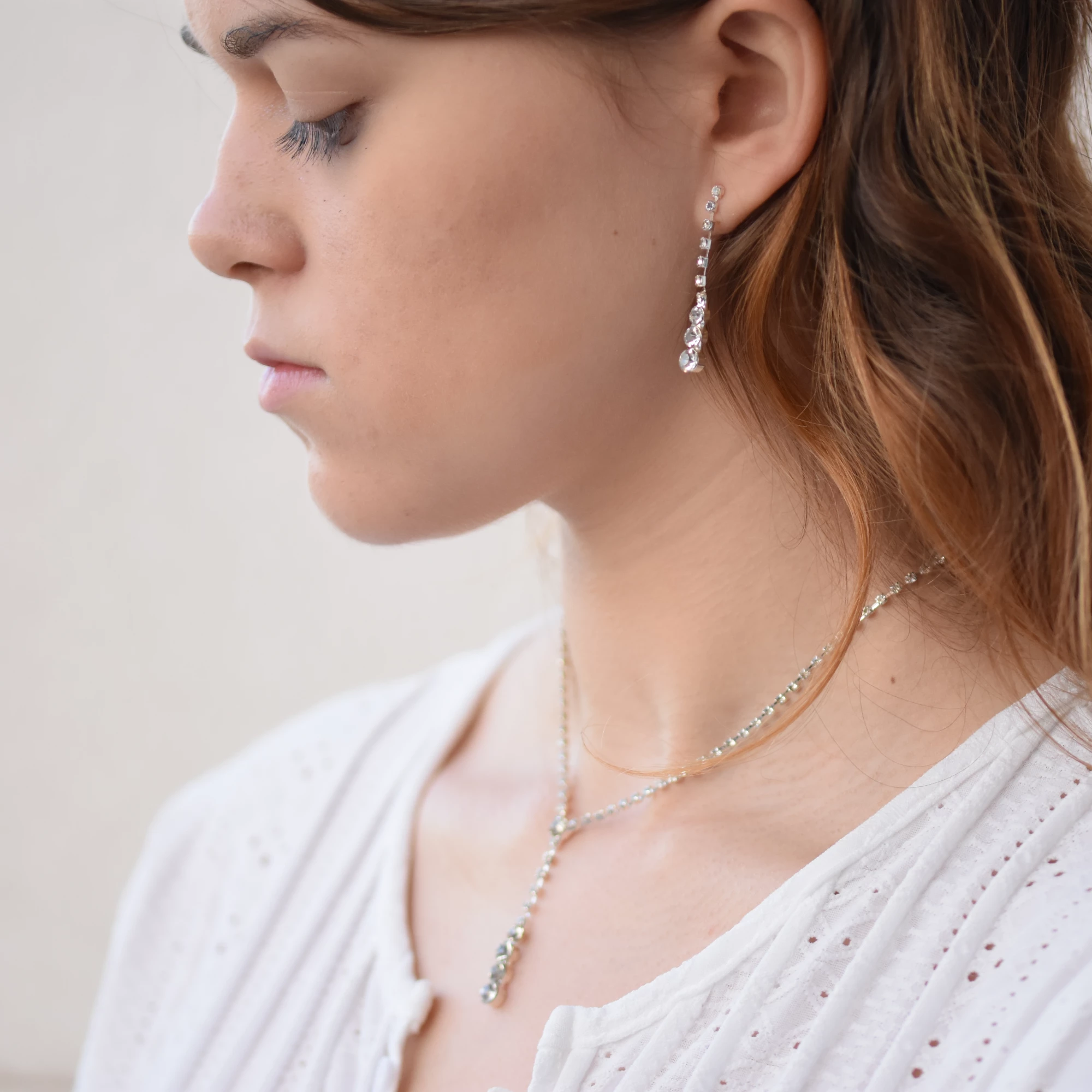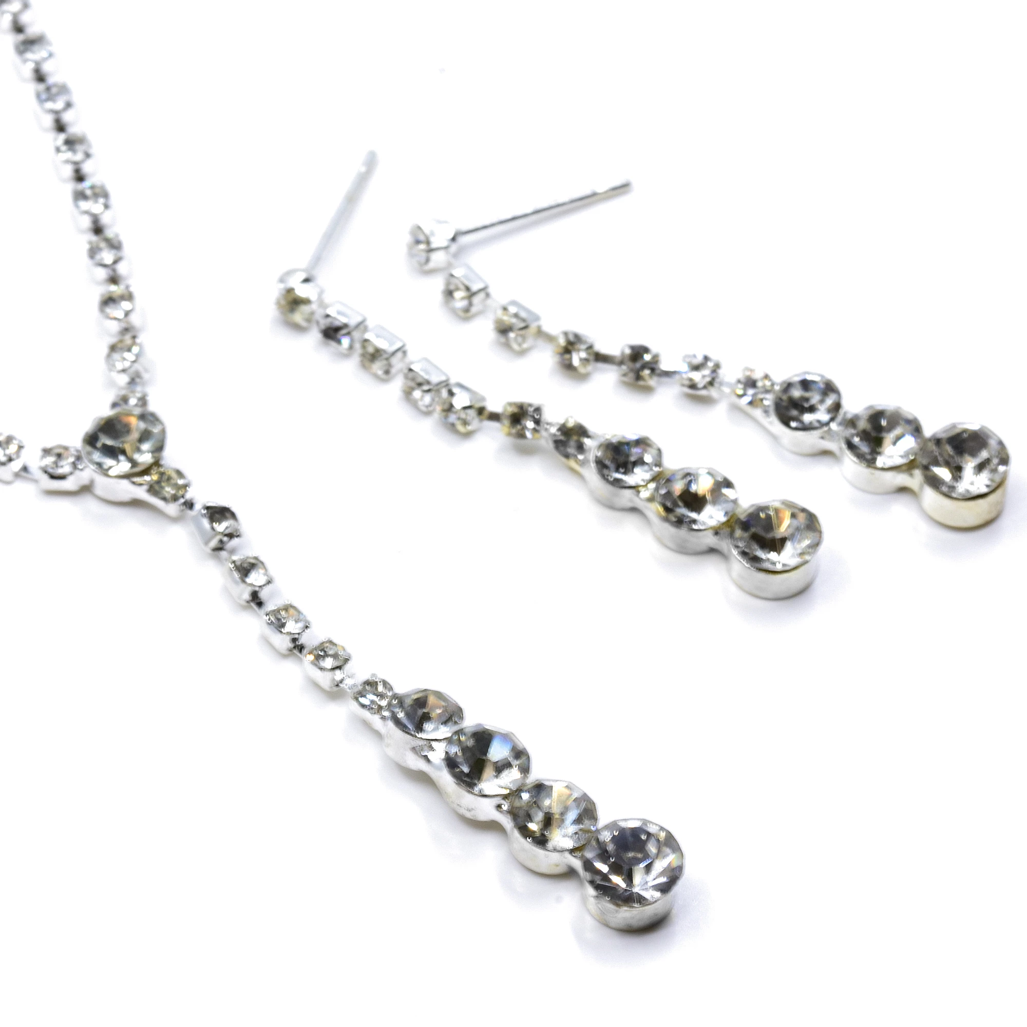 Zářivá dámská štrasová souprava se skládá z elegantního náhrdelníku a skvostných visacích náušnic. Skvěle se hodí na všechny slavnostní příležitosti.