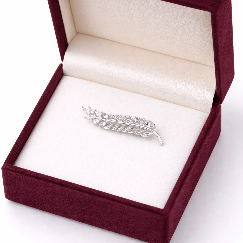 Stříbrná brož List se zirkony je vyrobena ze Stříbra Ag 925/1000 a zdobena třpytivými kameny zirkon (kubická zirkonie), které dodávají šperku jemný a elegantní lesk.