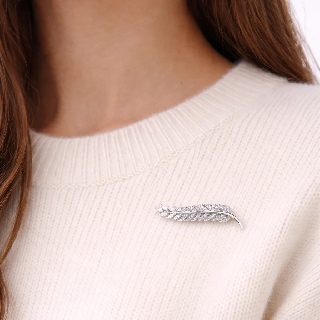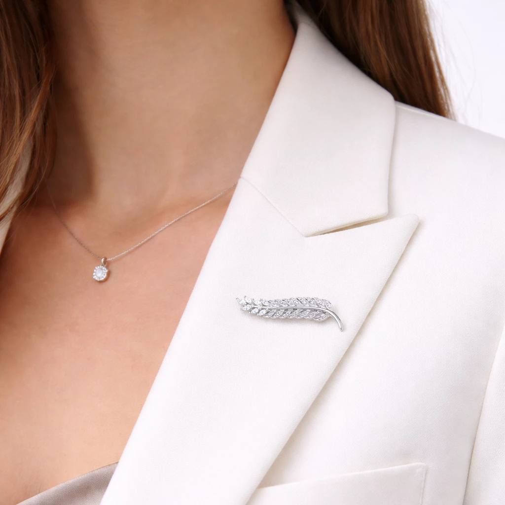 Stříbrná brož List se zirkony je jemný a nadčasový šperk, který dodá vašemu outfitu eleganci a přirozený půvab.