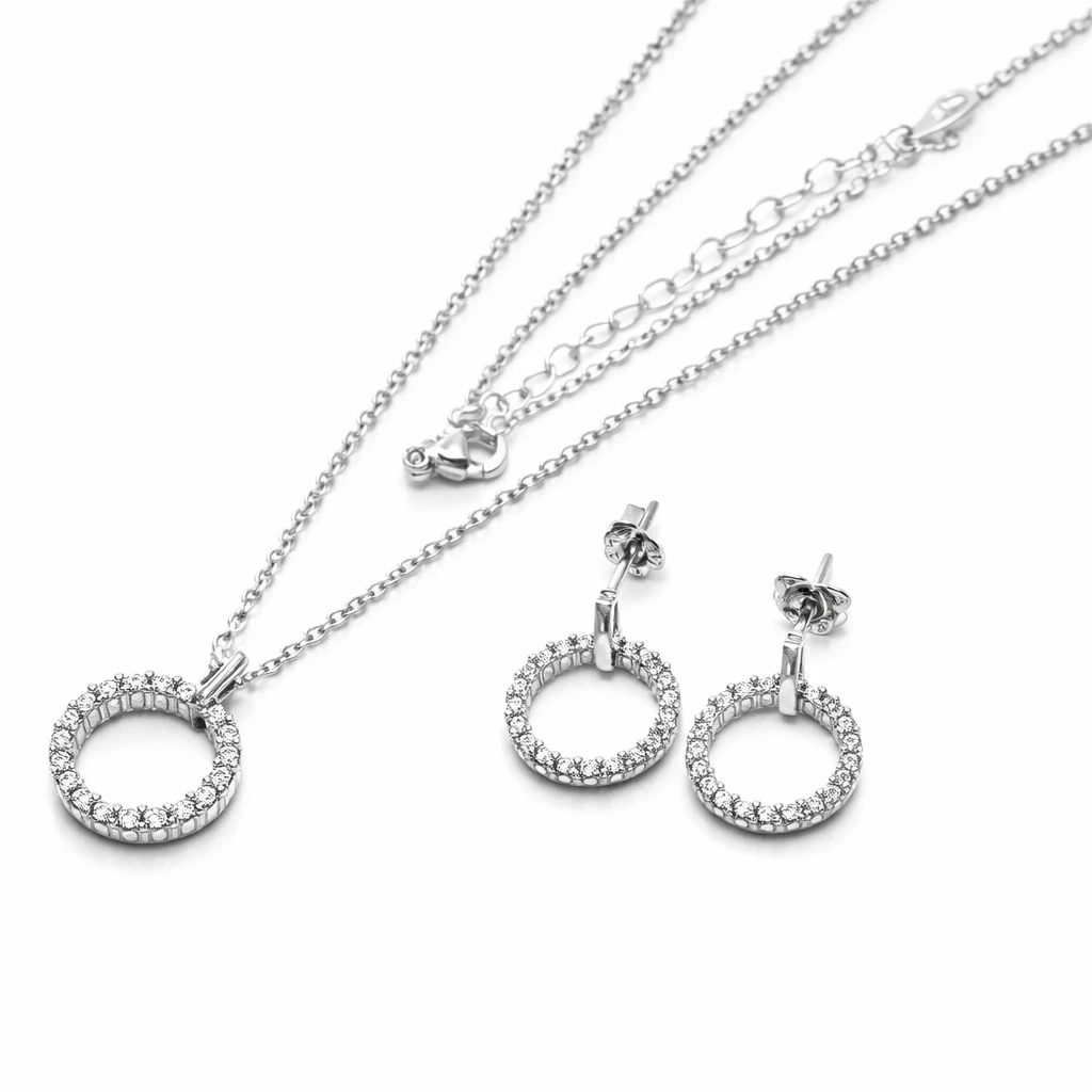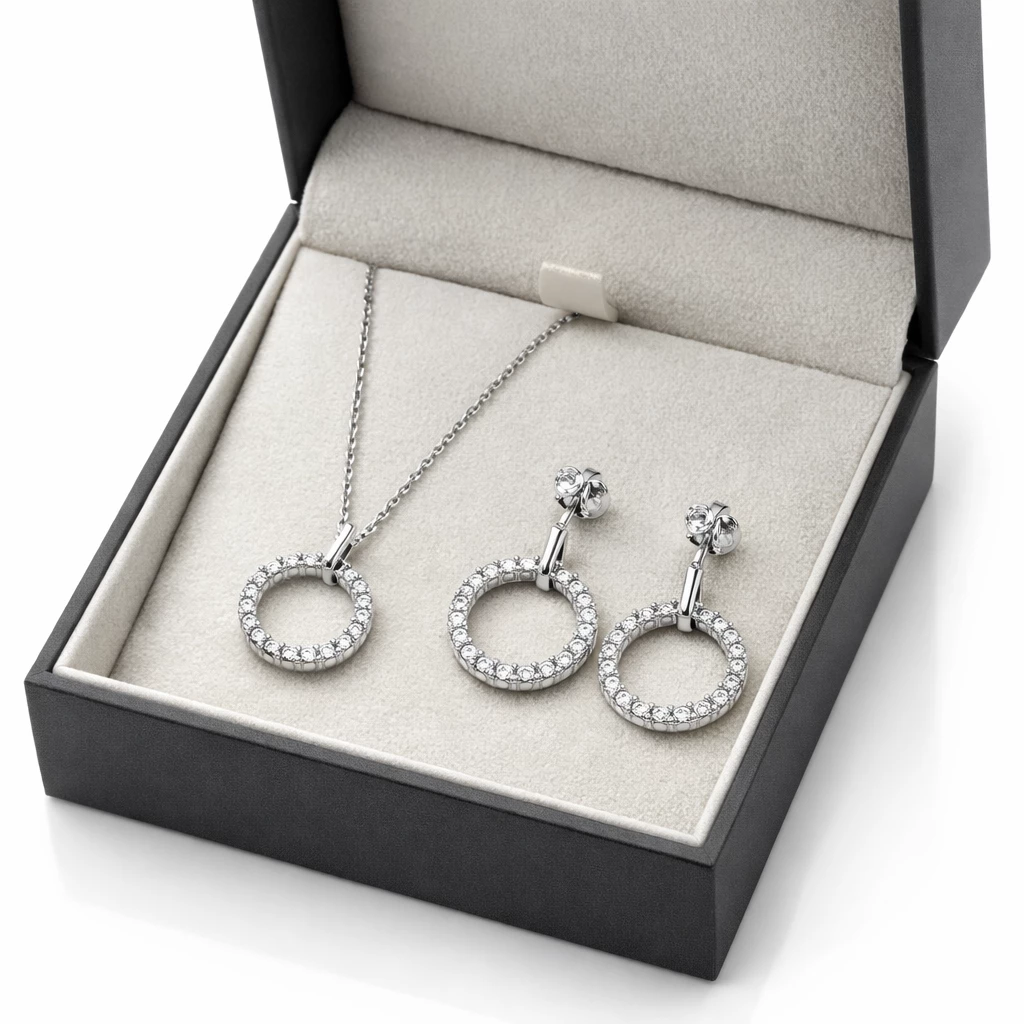 Elegantní souprava ze Stříbra Ag 925/1000 s kruhovým motivem osazeným třpytivými zirkony, která působí jemně, moderně a nadčasově.