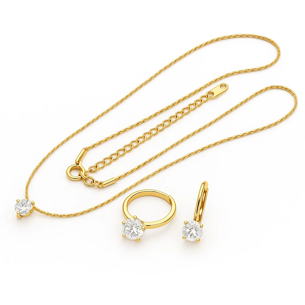 Ocelová souprava náušnic a náhrdelníku se skládá z našich nejprodávanějších náušnic a půvabného minimalistického náhrdelníku. Souprava je zdobena zirkonky, které zaručí nepřehlédnutelný třpyt, a také zlacením. Jedná se o luxusní sadu, která se nádherně leskne. Náušnice mají zacvakávací zapínání a náhrdelník zapínání na karabinku.