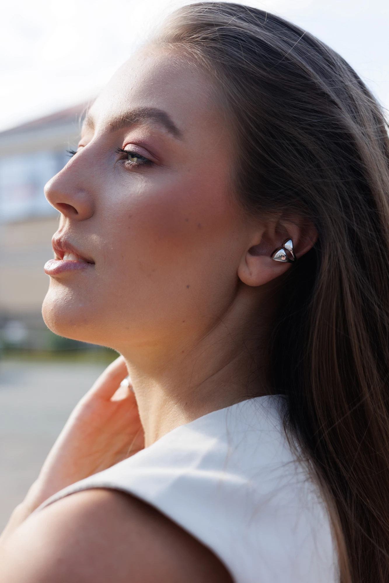 Dámská záušnice ve tvaru kapek je variantou náušnic bez nutnosti propíchnutí ušních lalůčků. Lze kombinovat i s jinými náušnicemi.