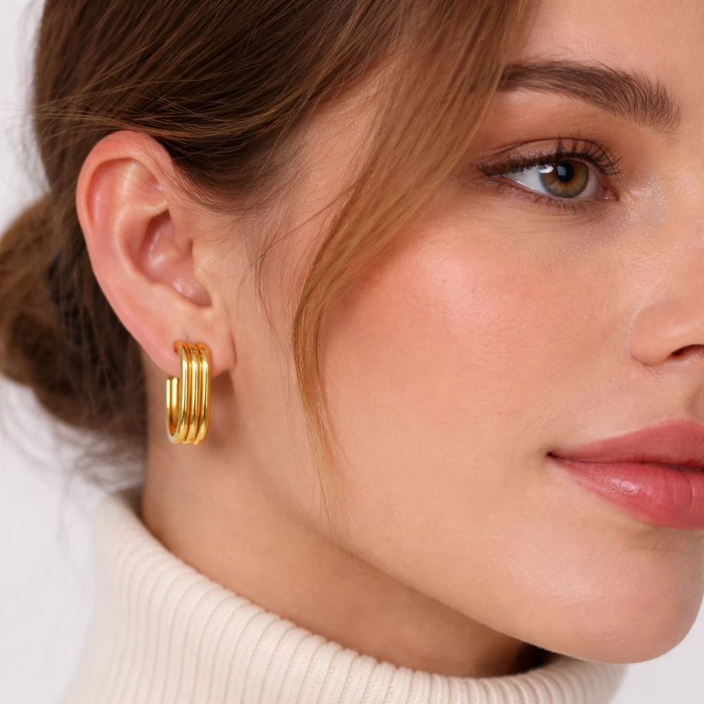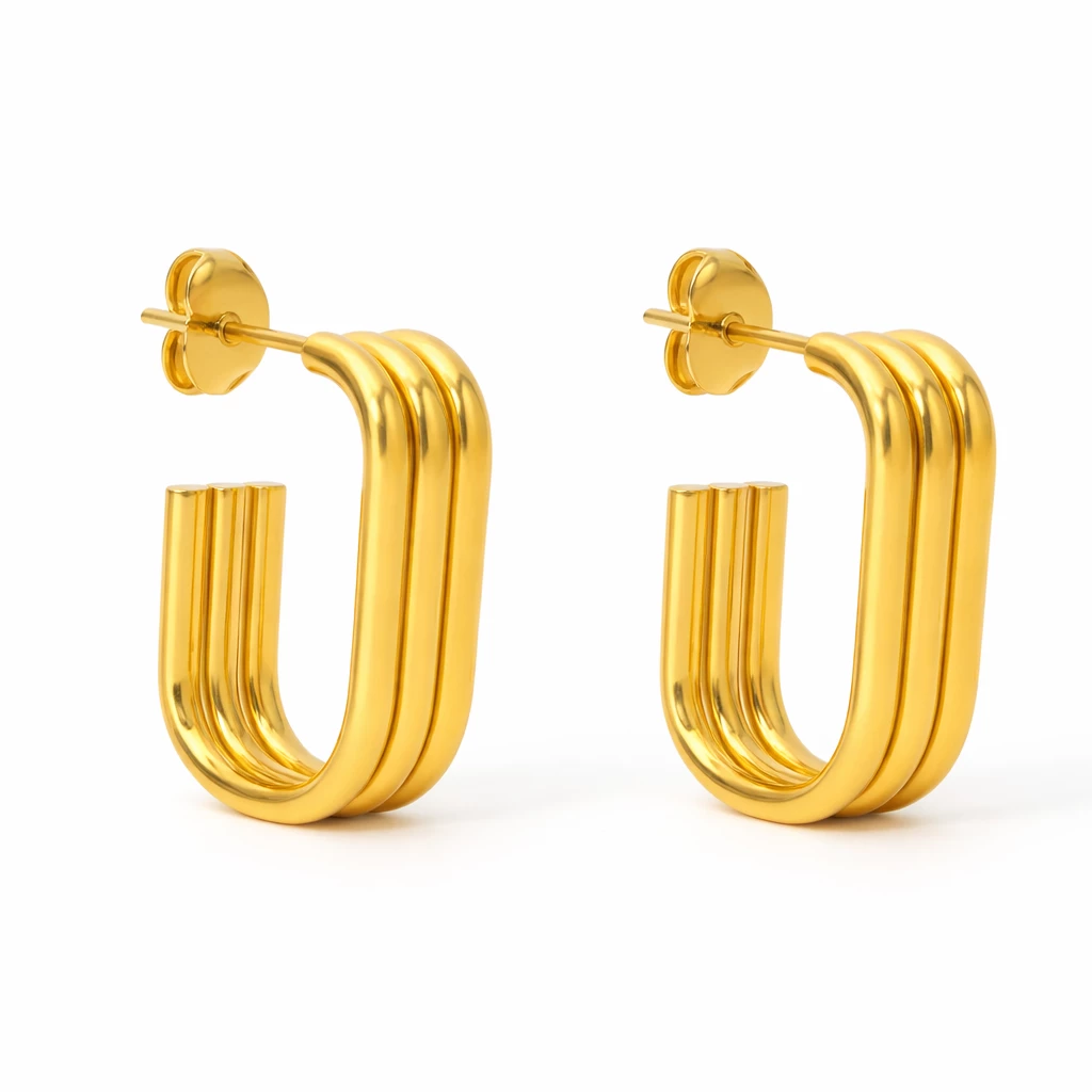 Krásné elegantní zlacené ocelové náušnice, které se hodí na každý den.
