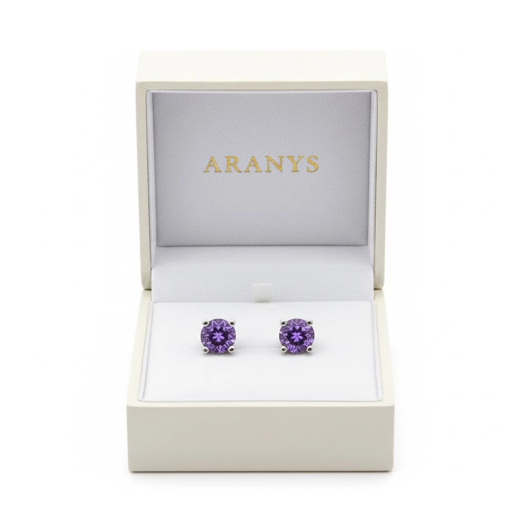 Stříbrné dámské či dětské fialové náušnice pro každý den i příležitost. Jemné náušnice pecky, které tvoří kamínek ametystu, jednoduše doladí Váš outfit.