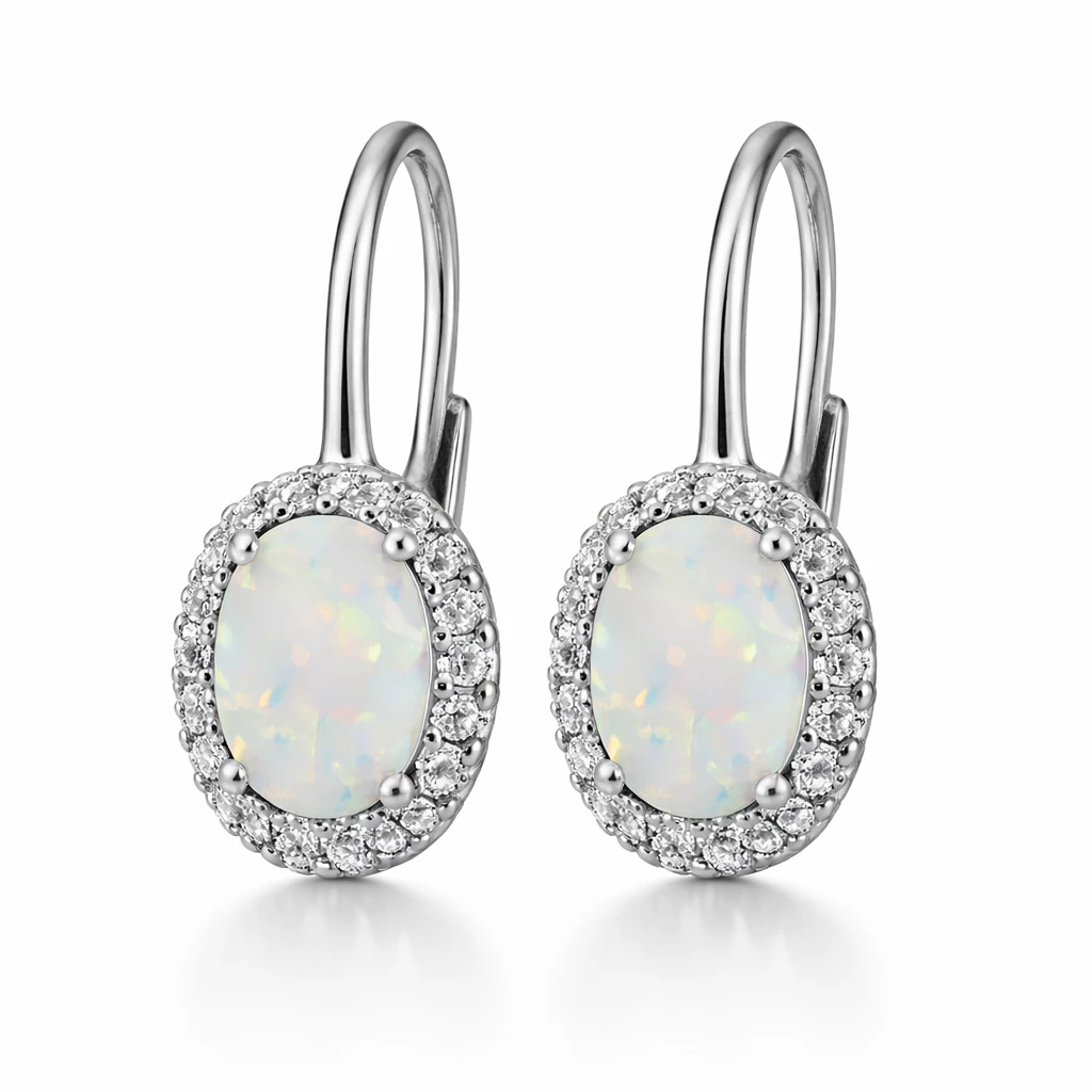 Stříbrné náušnice s bílým opálem Ina Aura ze Stříbra Ag 925/1000 okouzlí jemnou duhovou hrou světla a elegantním třpytem. Díky rhodiované povrchové úpravě jsou ideální i pro každodenní nošení.