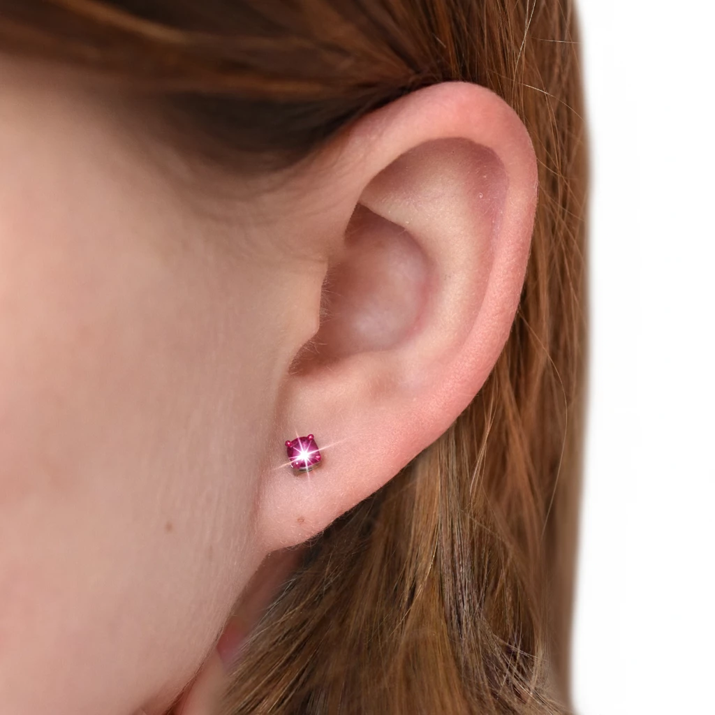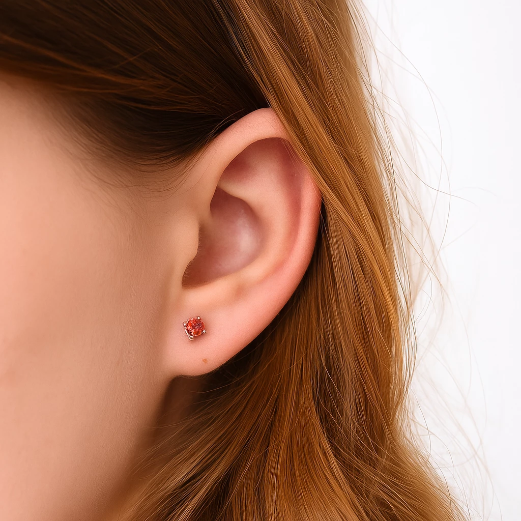 Stříbrné náušnice s moissanitem červené pecky. Moissanite je druhým nejtvrdším drahokamem na světě, hned za diamantem.