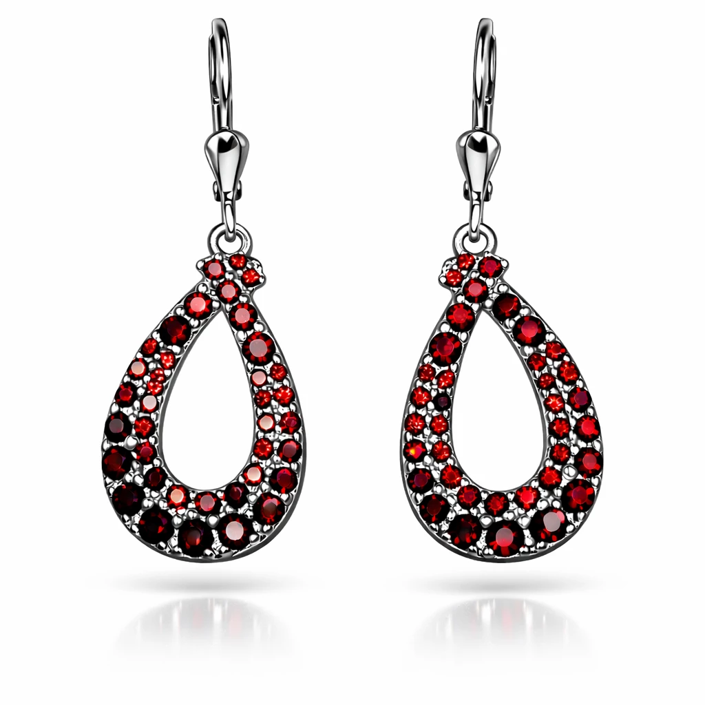 Stříbrné náušnice Silveria zdobené pravým českým granátem v moderním, elegantním vzoru. Vyberte si povrchovou úpravu: rhodiování pro extra odolný zrcadlový lesk nebo zlacení pro teplý zlatý tón. Česká výroba, pravé stříbro a poctivé zpracování.