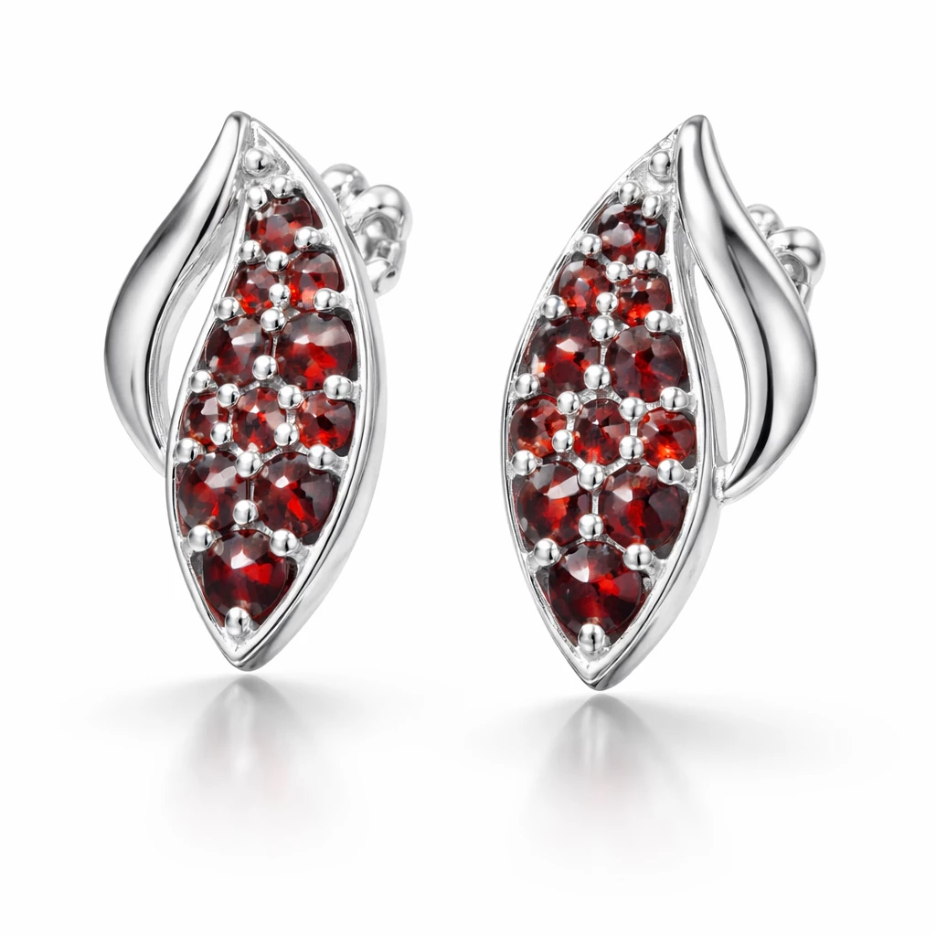 Stříbrné dámské náušnice ve tvaru kapky, jsou bohatě osázené různě velkými kamínky pravého českého granátu. Nádherná kombinace stříbra a rudé barvy granátu vás okouzlí.