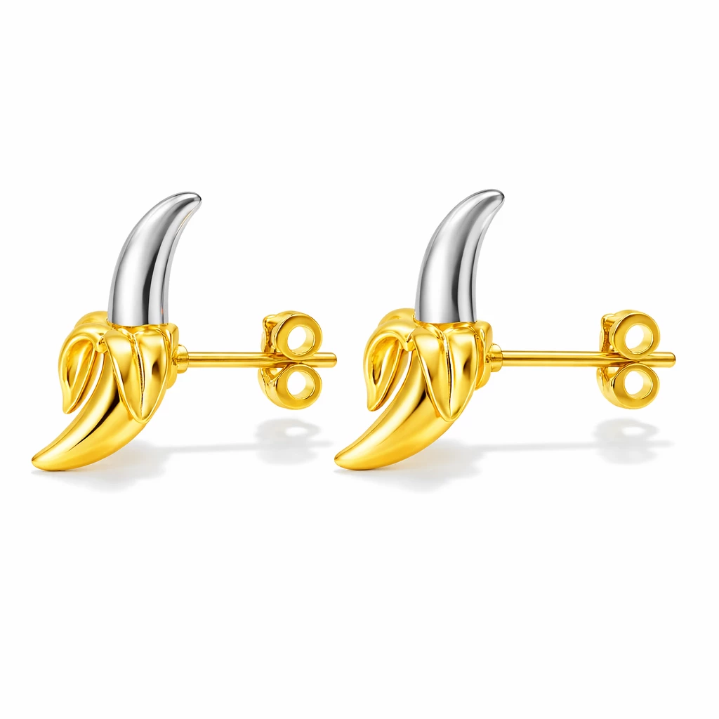Půvabné dámské i dětské stříbrné náušnice v exotickém designu působí roztomilým dojmem. Náušnice jsou ideální pro běžné nošení a mají zlato - stříbrnou barvu. Zapínání na puzetu. Kreativně je můžete sladit s ostatními šperky - ať už stříbrnými, zlatými, nebo zlacenými.