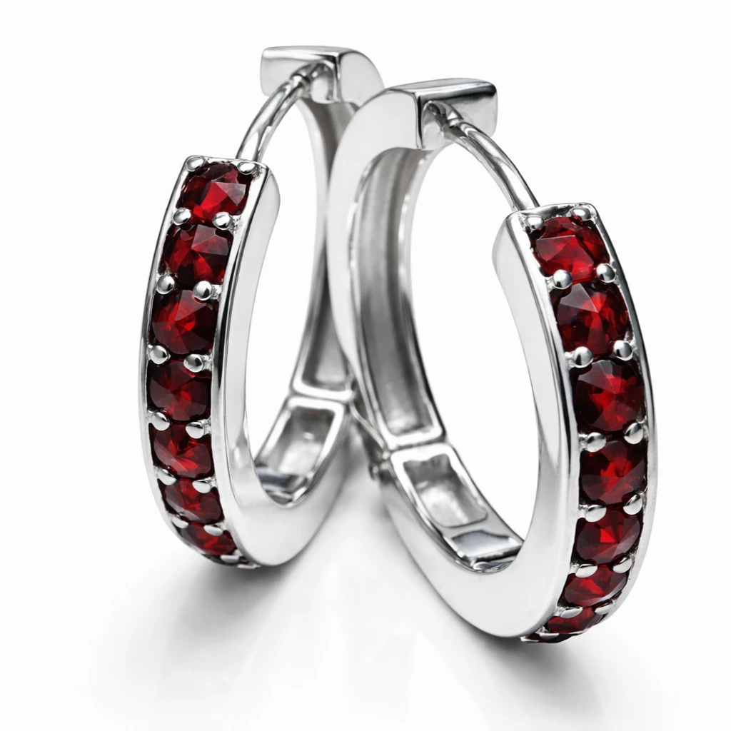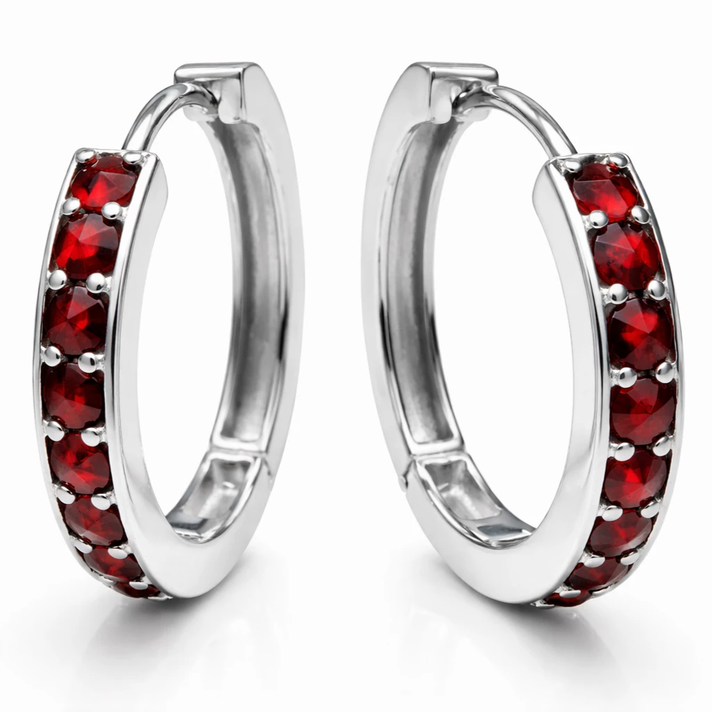 Elegantní kruhové dámské náušnice v nádherné kombinaci stříbra a rudých českých granátů jsou dokonalým šperkem pro moderní ženu.
