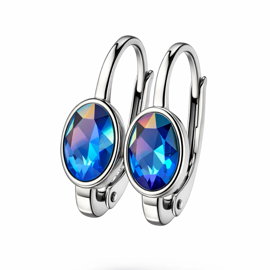 Dominantou náušnic je krystal Swarovski v oválném brusu, jehož fascinující hra barev vytváří duhové odlesky při každém pohybu. Elegantní tvar náušnic působí nadčasově a skvěle doplní jak každodenní, tak slavnostní outfit.