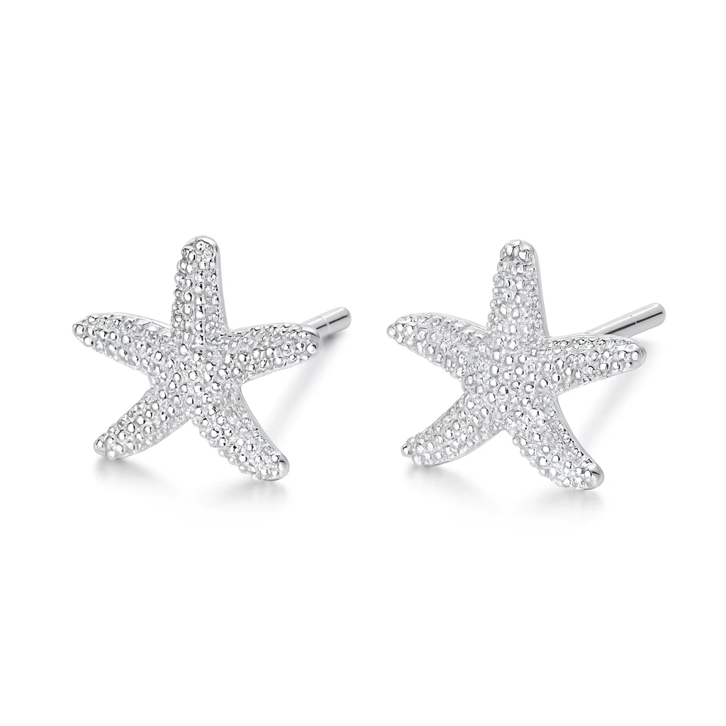 Těmito náušnicemi se můžete ozdobit při každodenním nošení. Jsou lehounké, elegantní a velmi pohodlné při nošení. Povrch mořské hvězdy je hrubší a tvořen malinkými kamínky. Níže se mrkněte na naši bohatou nabídku stříbrných šperků a inspirujte se. Zapínání je puzetové a povrch rhodiovaný.