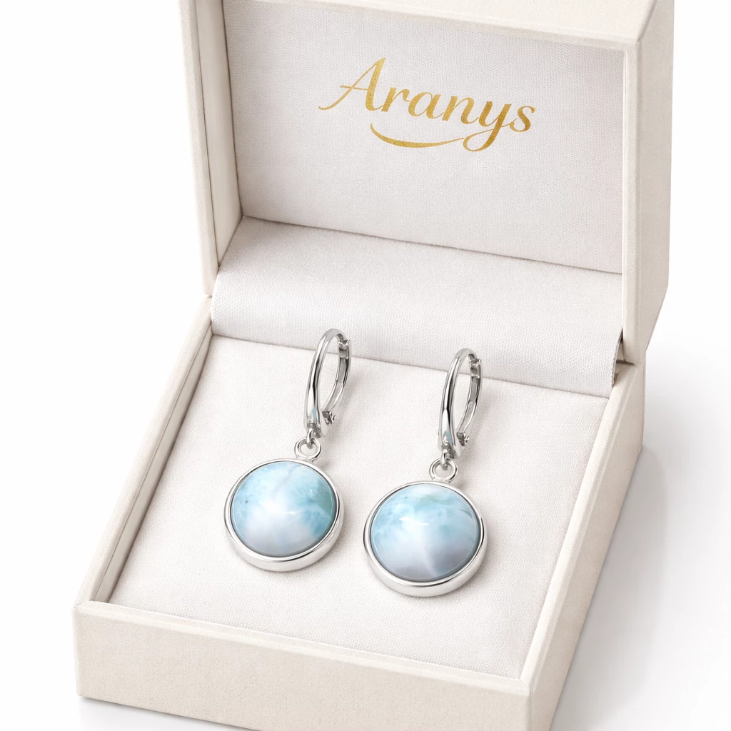 Jemné náušnice ze Stříbra Ag 925/1000 s přírodním larimarem v čistém a nadčasovém designu, který podtrhne přirozenou eleganci a lehkost.