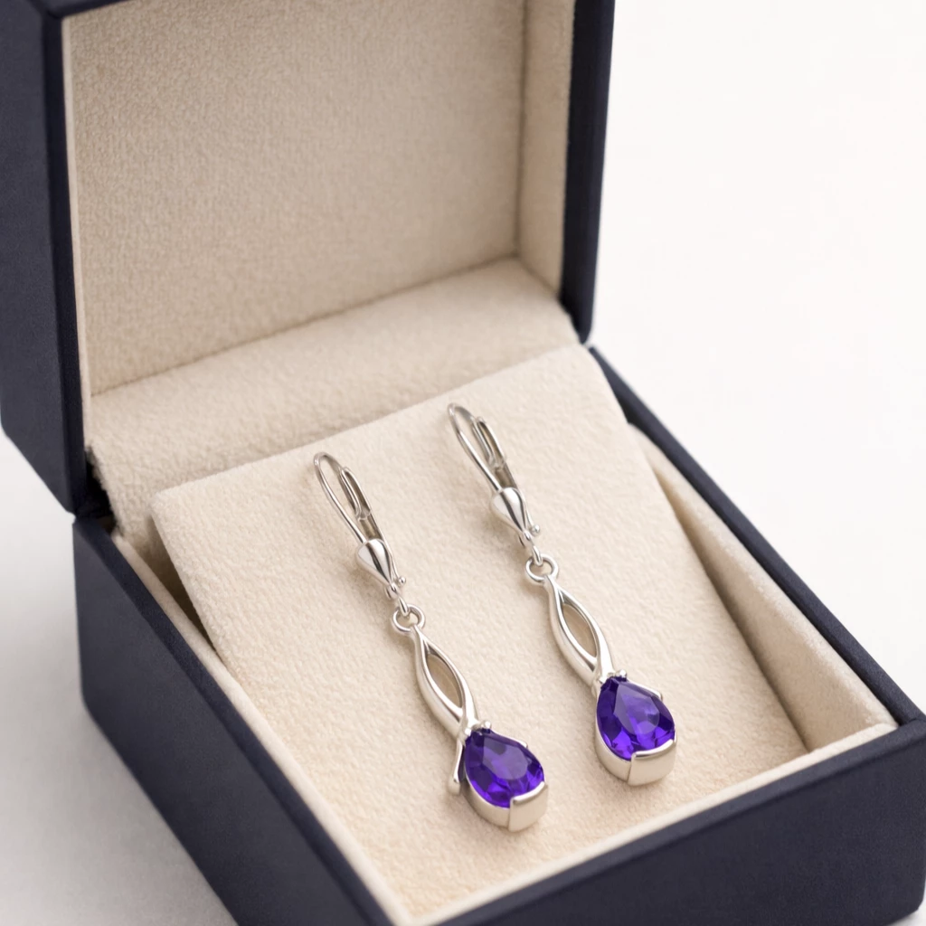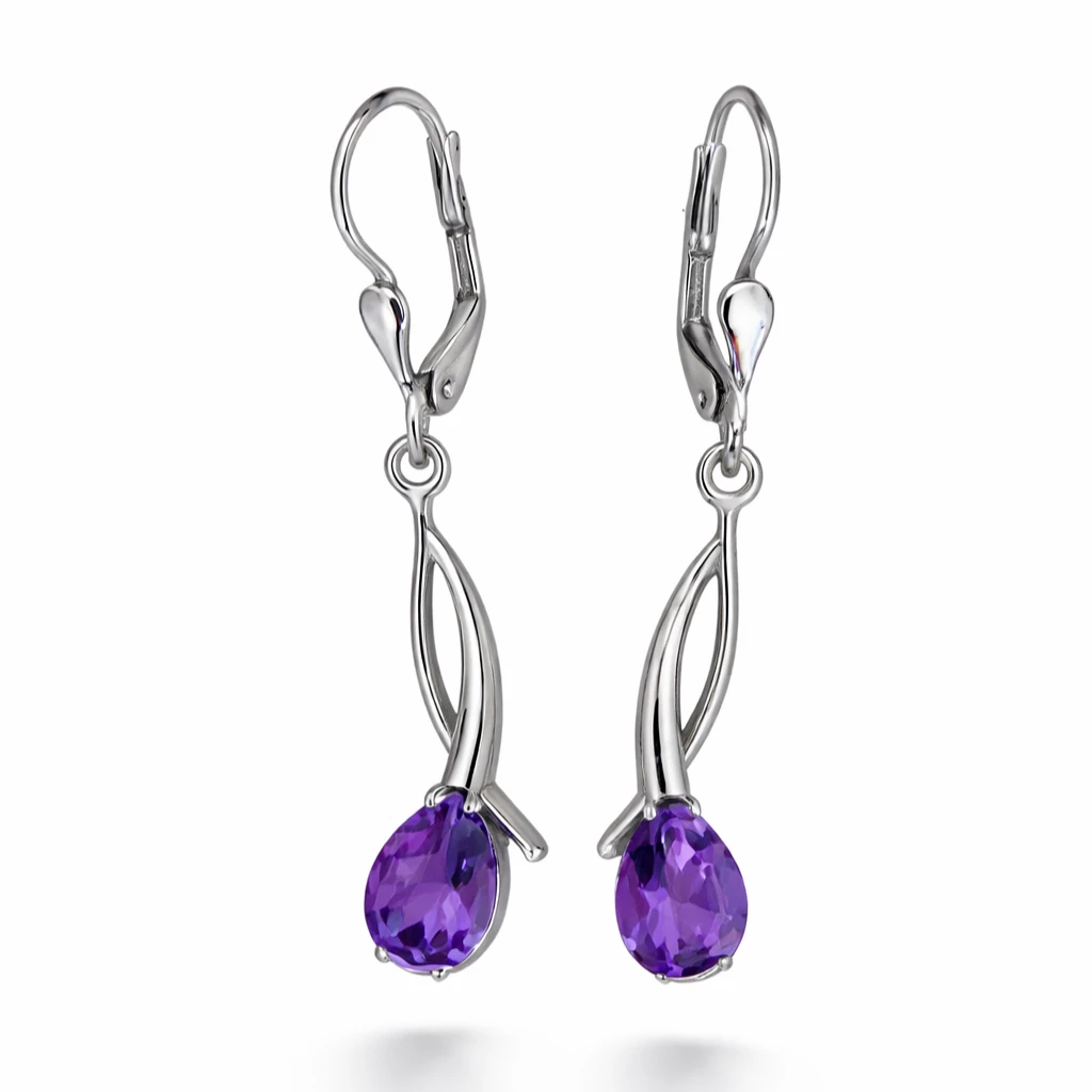 Elegantní stříbrné náušnice kapka s ametystem Lilienne jsou vyrobeny z kvalitního Stříbra Ag 925/1000 s povrchovou úpravou rhodiováním. Dominantní ametyst v kapkovém brusu vyniká svou sytě fialovou barvou a jemným třpytem.