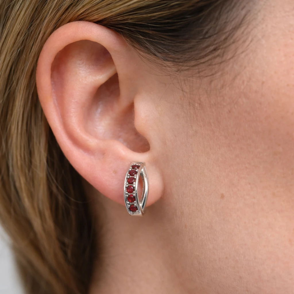 Stříbrné náušnice s českým granátem Granvera jsou vyrobeny z kvalitního Stříbra Ag 925/1000 s luxusní rhodiovanou povrchovou úpravou, která zajišťuje vyšší odolnost proti zčernání a dlouhotrvající lesk. Řada pravých českých granátů je precizně zasazena do jemně zakřiveného designu, který působí elegantně, moderně a zároveň nadčasově.