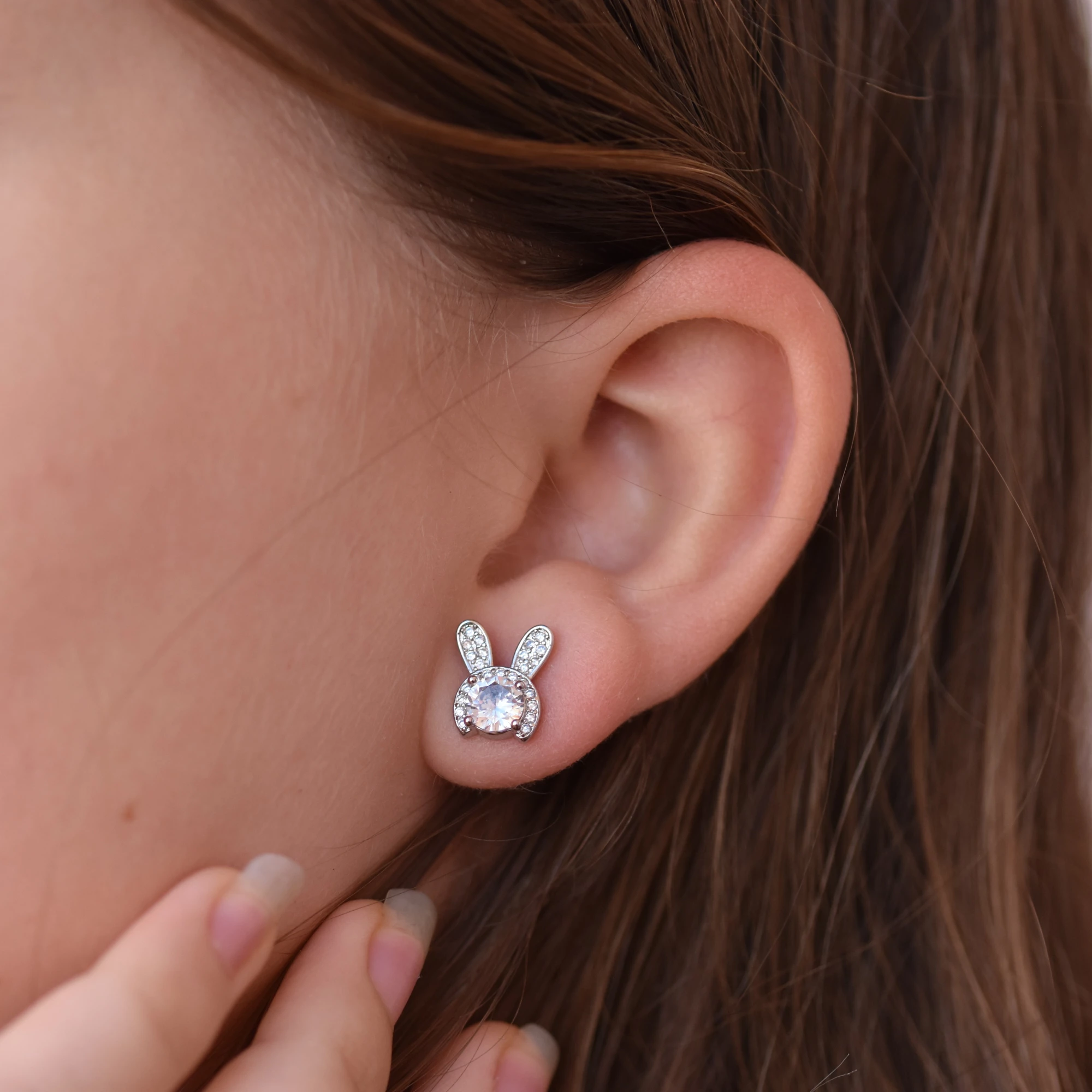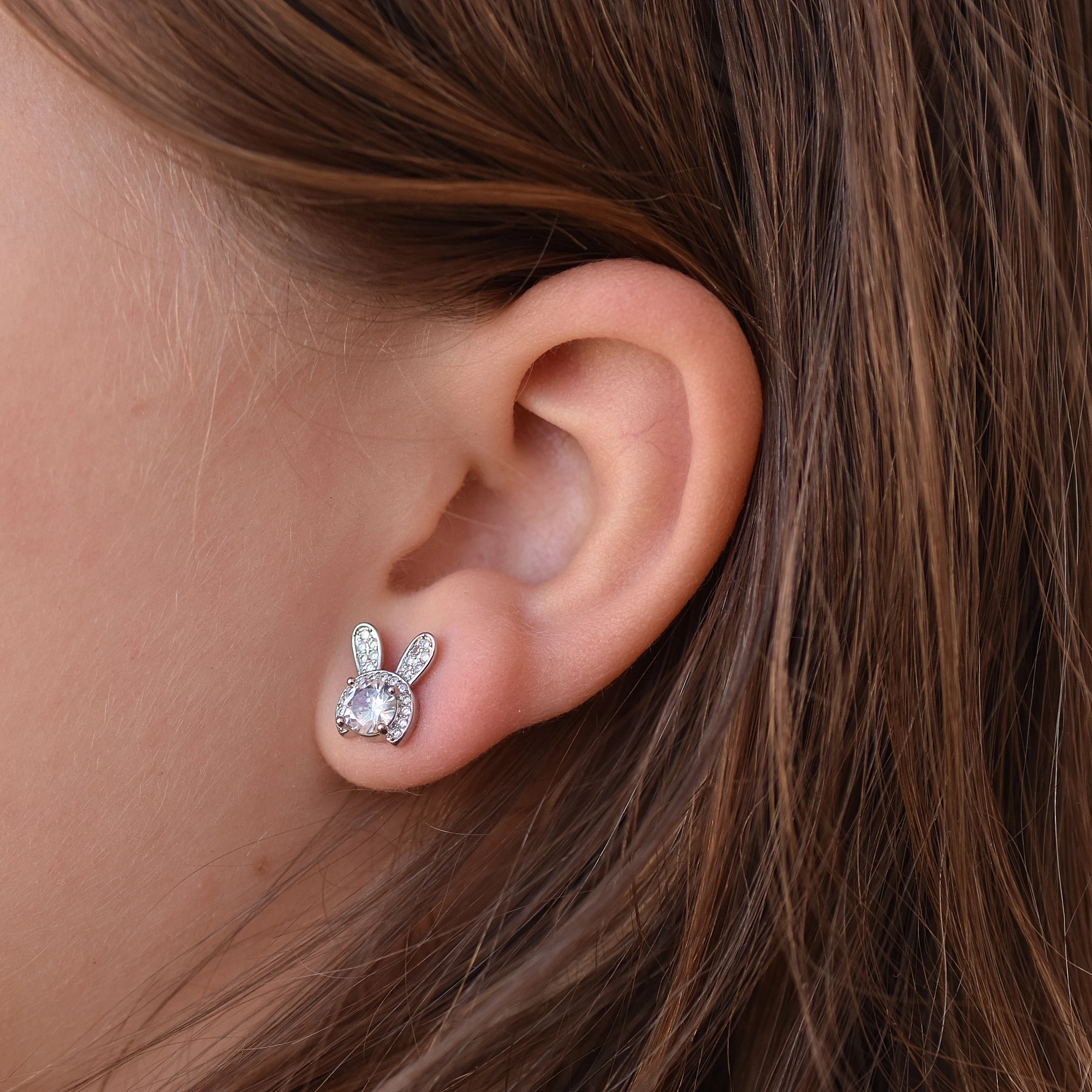 Roztomilé stříbrné náušnice s motivem králíčka zdobené zirkony. Šperk, který ocení jak děti, tak dospělí.