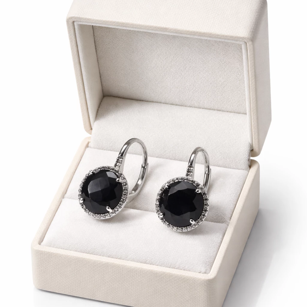Luxusní náušnice, které díky hluboké barvě onyxu a jemnému třpytu zirkonů působí tajemně, elegantně a nadčasově.