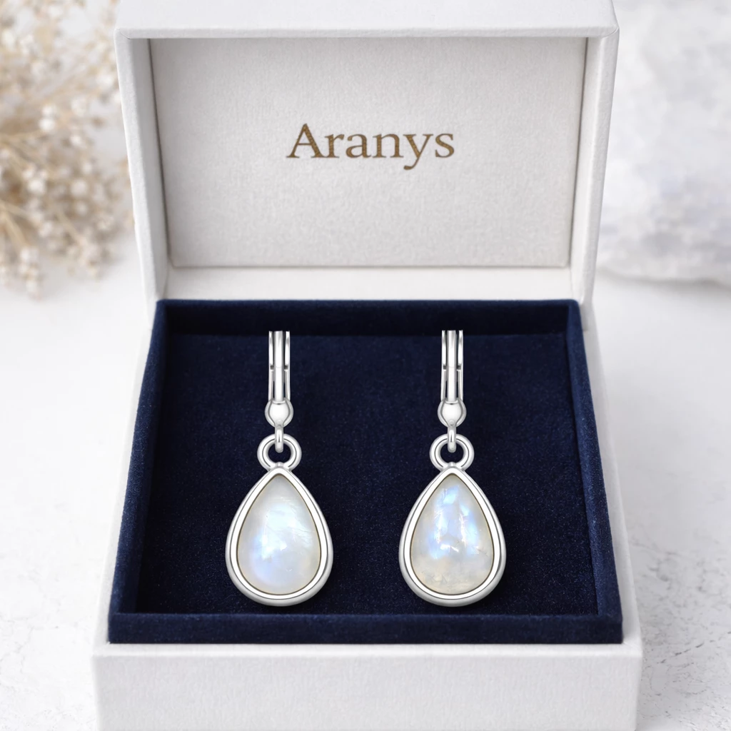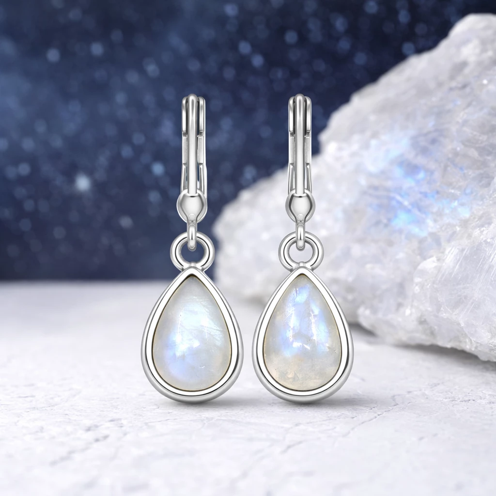 Elegantní stříbrné náušnice s přírodním měsíčním kamenem z naší české výroby. Pravé stříbro, jemný duhový lesk a bezpečné zapínání na klapku pro pohodlné nošení.