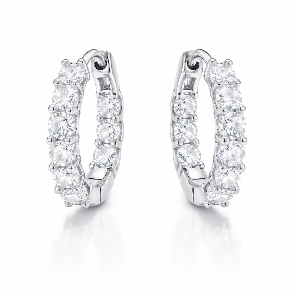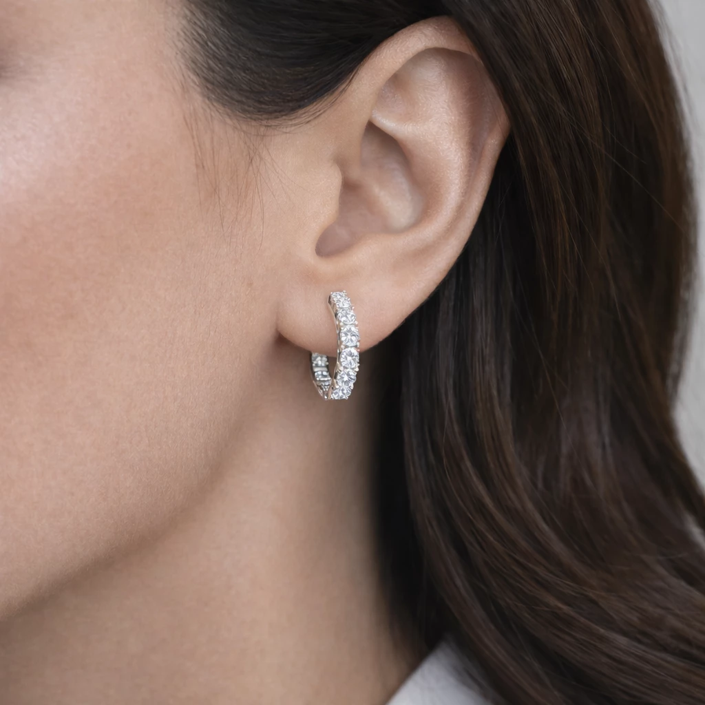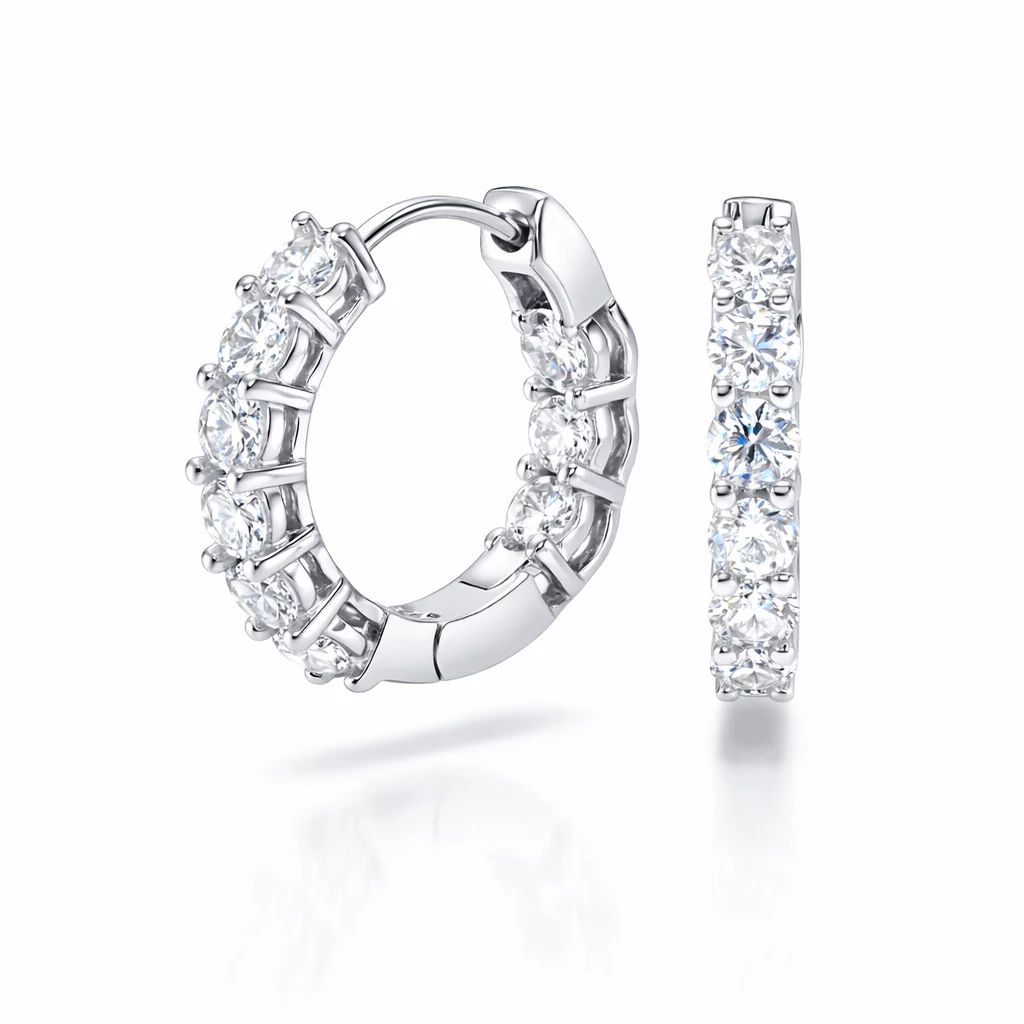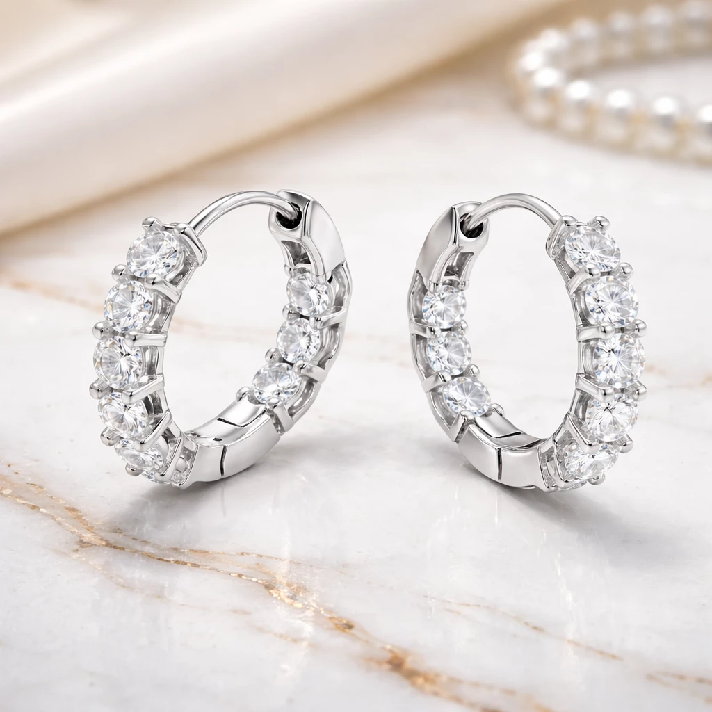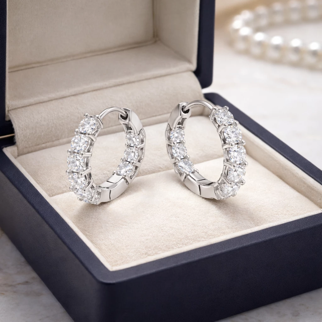 Stříbrné kruhové náušnice s moissanitem Venezia jsou vyrobené z kvalitního Stříbra Ag 925/1000 a zdobí je precizně broušený laboratorní Moissanit, který vyniká mimořádnou brilancí a luxusním diamantovým efektem. Díky bohatému osazení náušnice září z každého úhlu a vytváří dojem šperku z vyšší klenotnické kategorie.