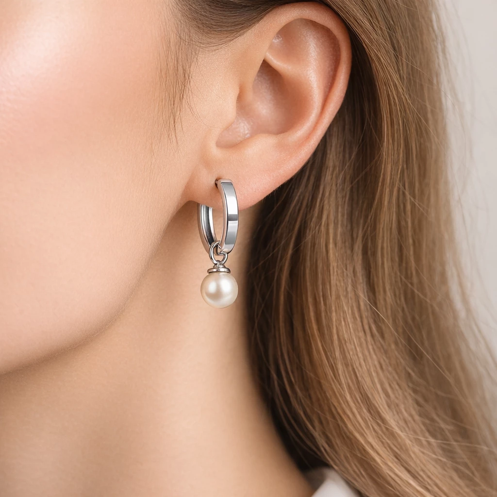 Elegantní dámské stříbrné náušnice s pravou říční perlou.