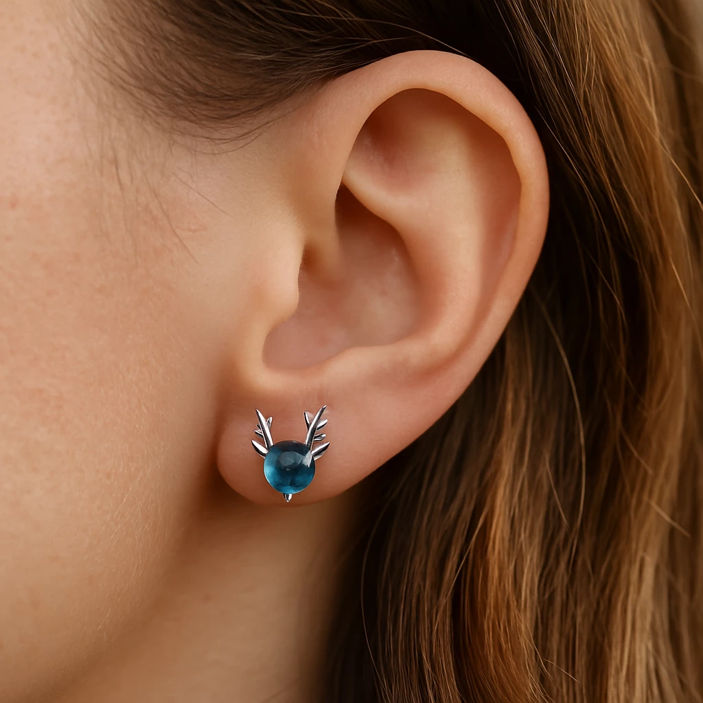Minimalistické stříbrné náušnice s motivem soba a půvabným modrým zirkonem. Ocení všichni milovníci zvířat a zimy. Ilustrační foto.