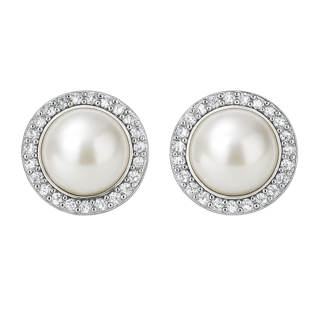 Působivé dámské stříbrné náušnice se zirkony a masivní perlou. Okouzlí na první pohled a zaručeně upoutají pozornost.