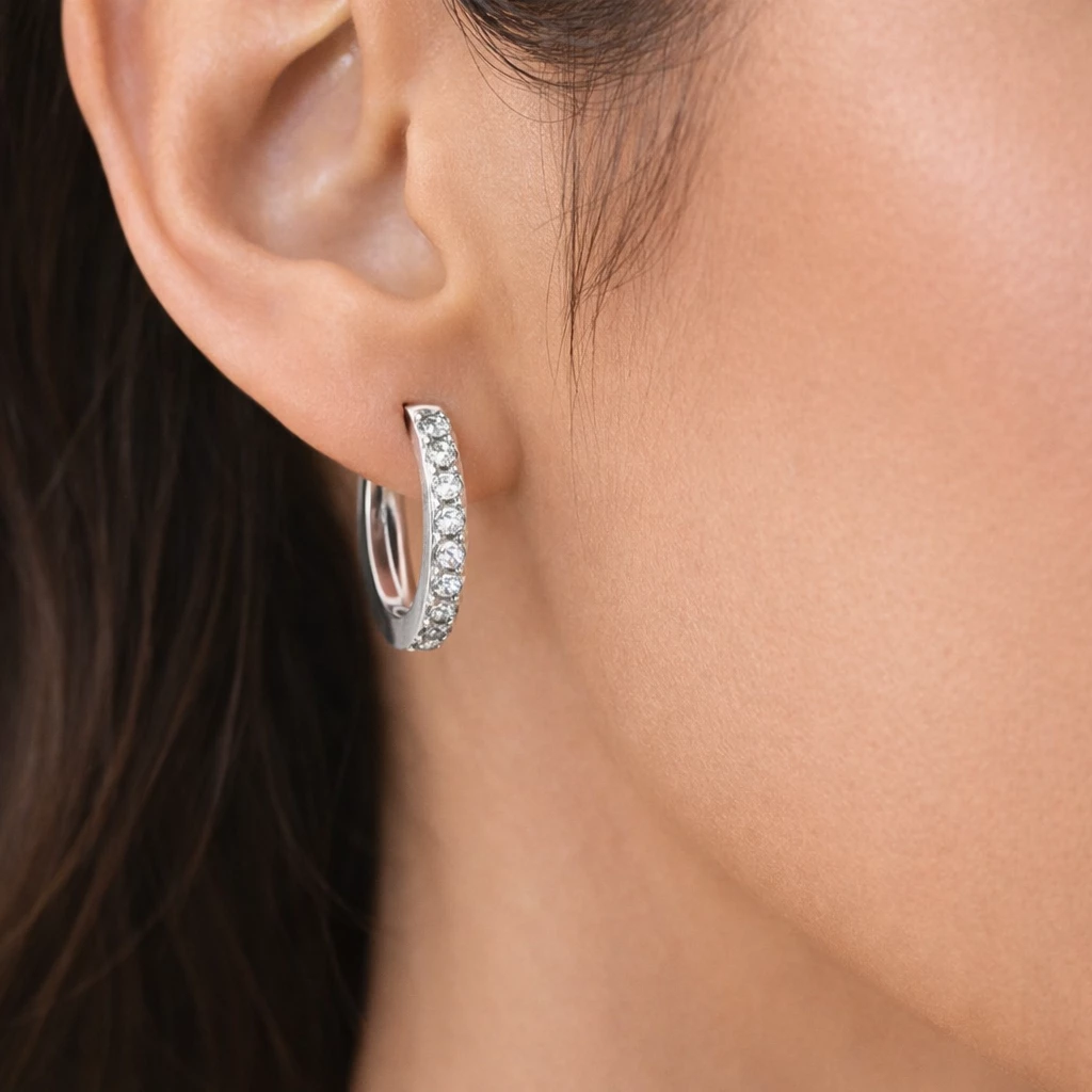 Těmito skvostnými kruhovými náušnicemi se můžete ozdobit nejen každý den, ale také v případě, kdy Vás čeká slavnostnější událost. Po celém svém obvodu jsou zdobeny třpytivými zirkonky. Náušnice jsou pohodlné při nošení a díky své jemnosti velmi okouzlující. Mají zacvakávací zapínání.