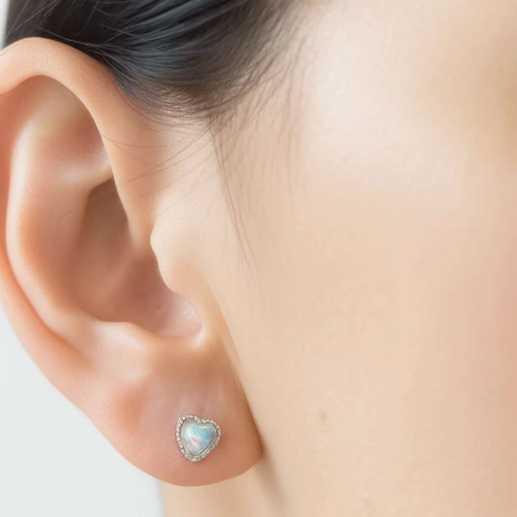 Objevte jedinečnou krásu těchto dámských náušnic s měsíčním kamenem, který má neodolatelný růžovomodrý odlesk. Zapínání na puzetu.