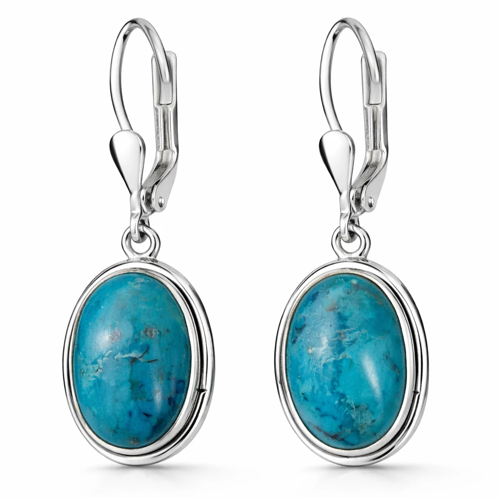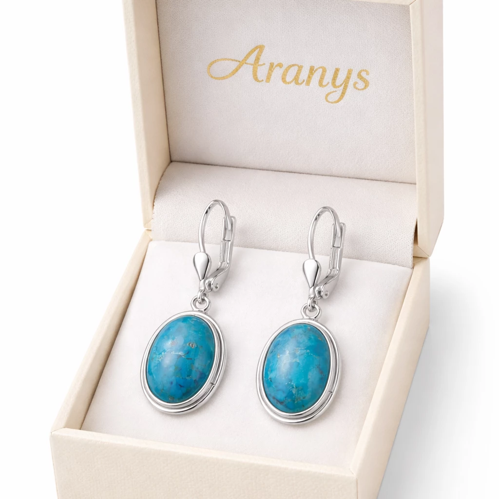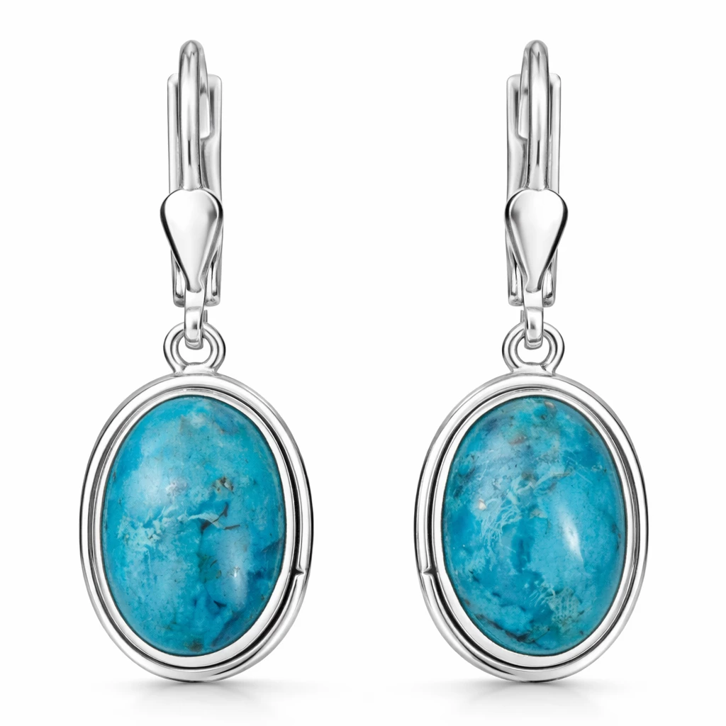 Stříbrné náušnice Maris jsou vyrobeny z kvalitního Stříbra Ag 925/1000 a zdobí je oválné tyrkysy, které vynikají svou přirozenou kresbou i harmonickými modrozelenými odstíny. Díky svému elegantnímu provedení působí jemně, nadčasově a snadno se kombinují s dalšími šperky.