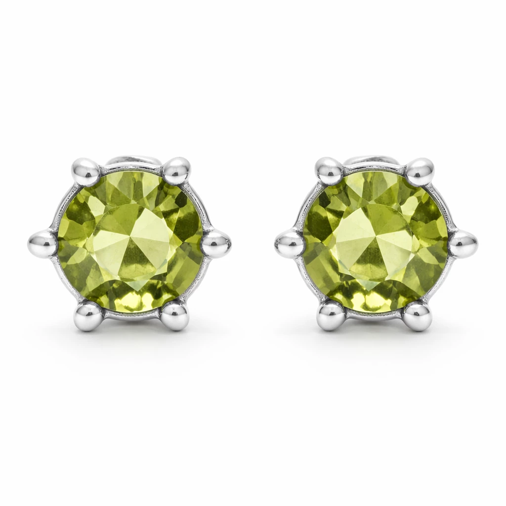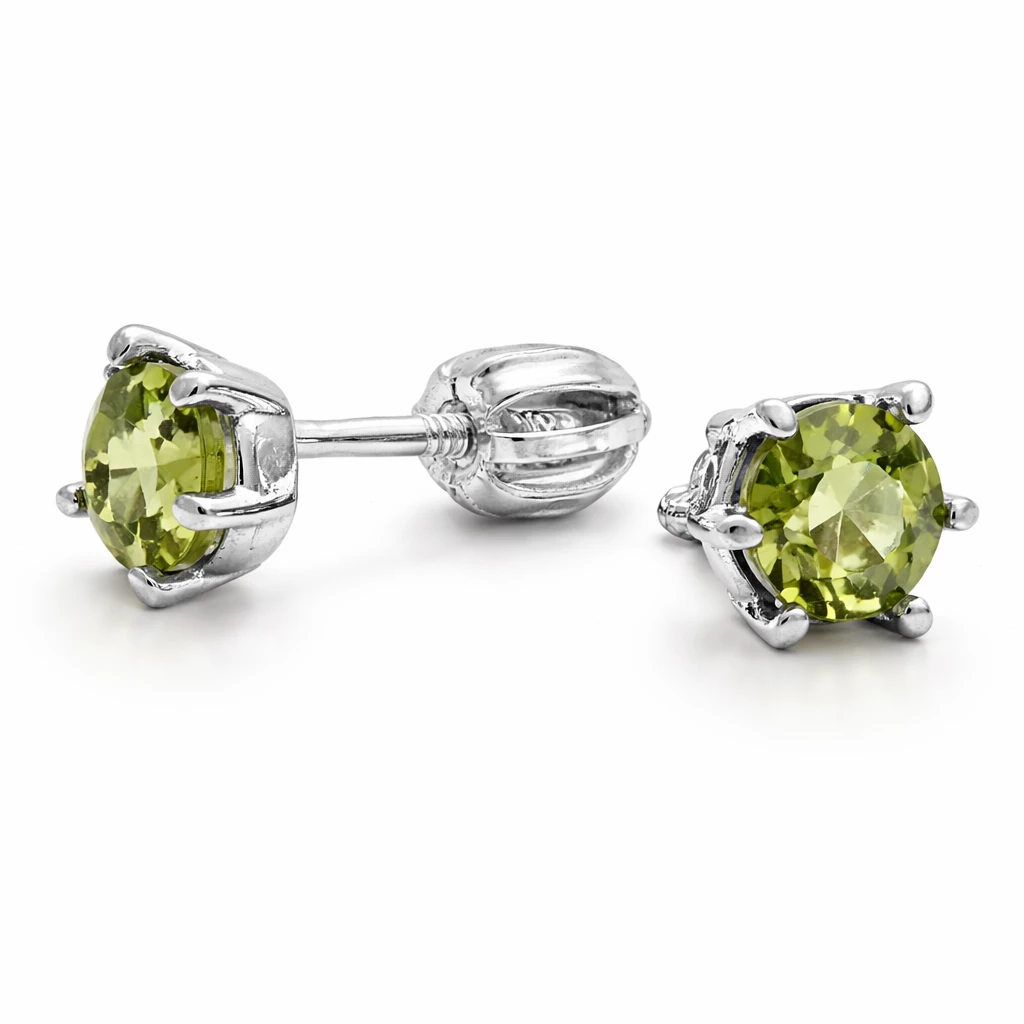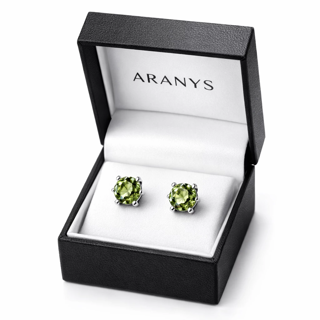 Velice krásné a jednoduše elegantní jsou tyto náušnice s krásným olivově zeleným vltavínem, kterému se též říká moldavit. Broušený kámen je vsazen do stříbra a zapínání náušnic je na šroubek.
