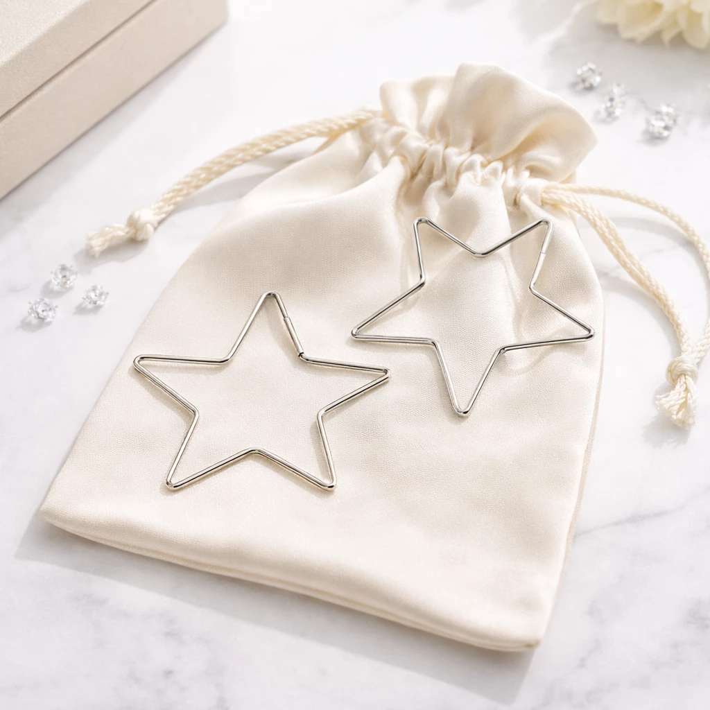 Stříbrné náušnice hvězdy Naty jsou vyrobeny ze kvalitního Stříbra Ag 925/1000 a mají jemný obrysový tvar hvězdy. Díky lehké konstrukci jsou velmi pohodlné na nošení a skvěle se hodí jak k ležérním, tak i elegantnějším outfitům.