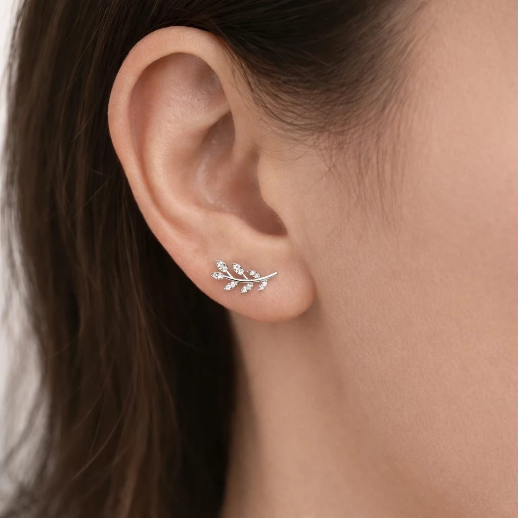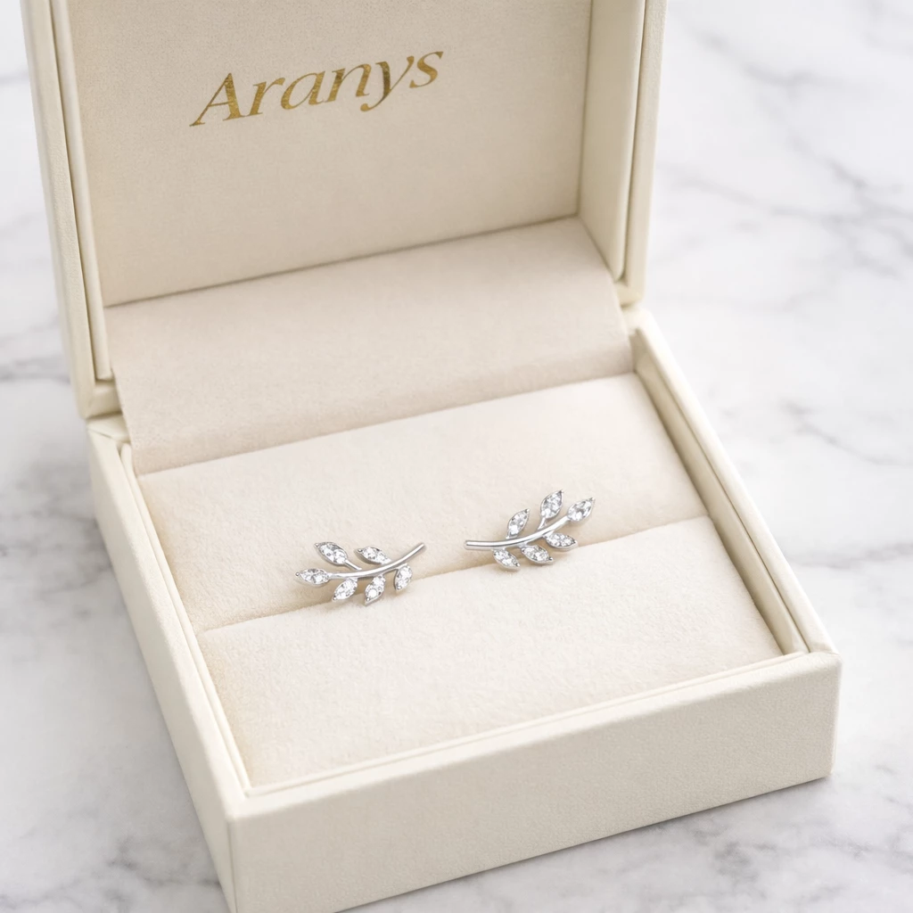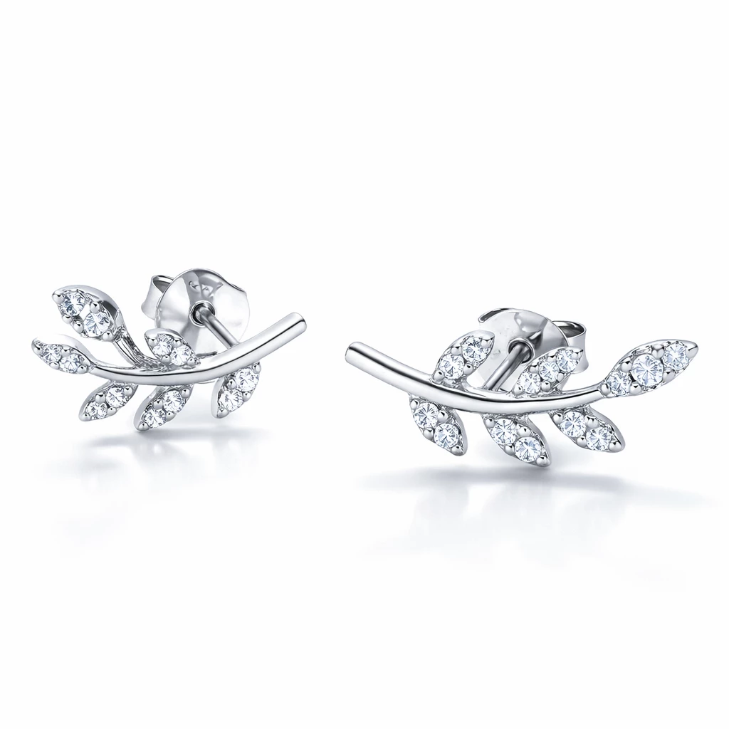 Stříbrné náušnice s motivem lístečků se zirkony. Nádherný šperk, se kterým zazáříte.
