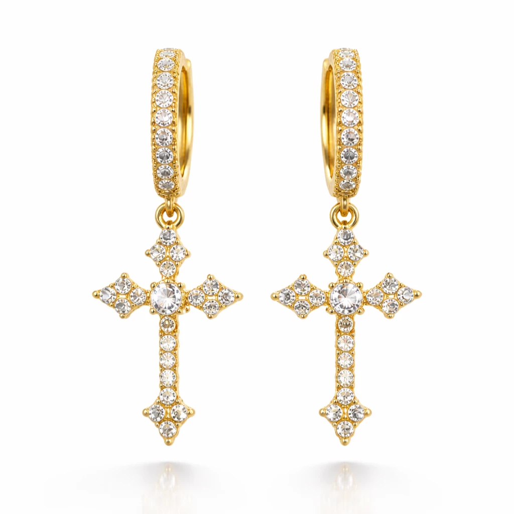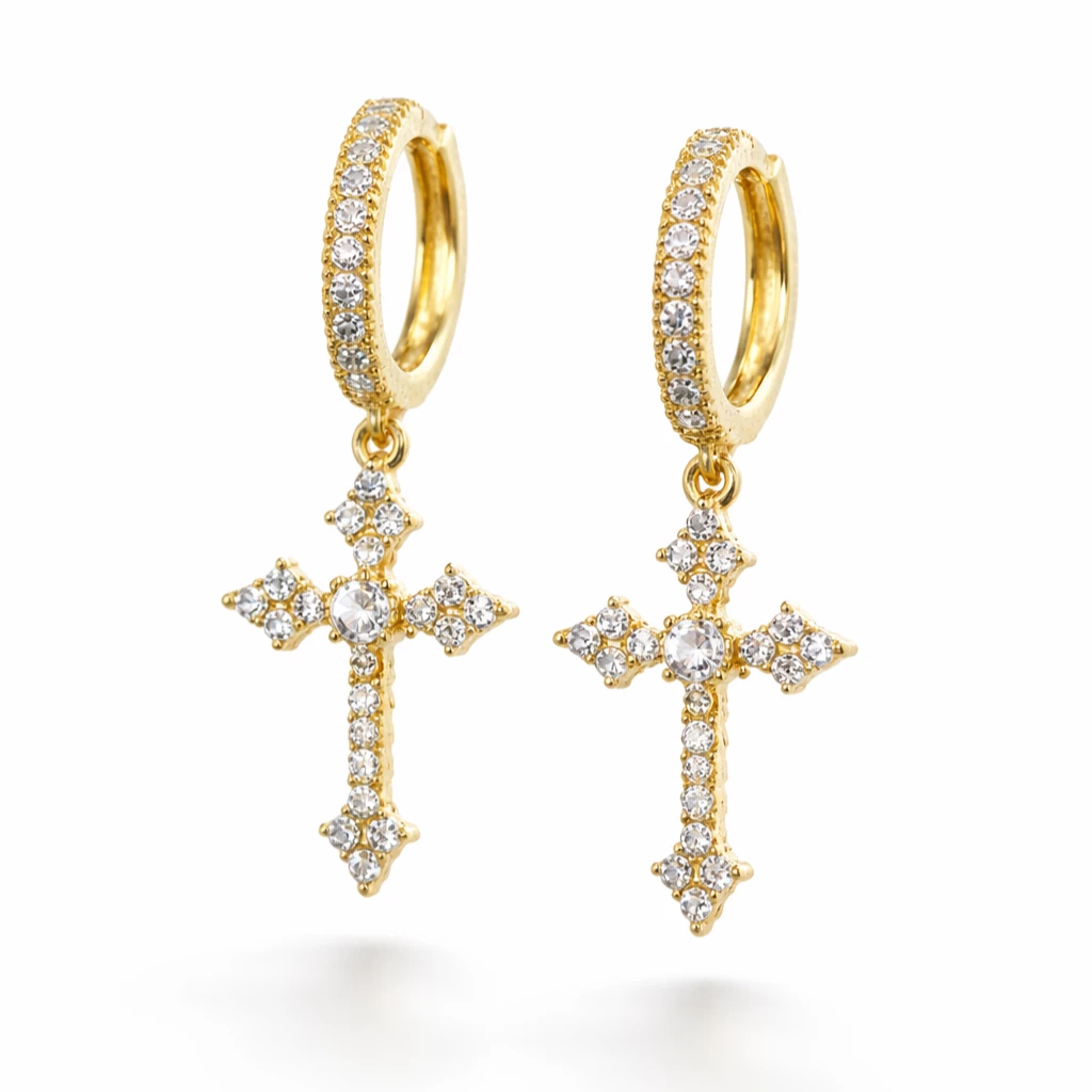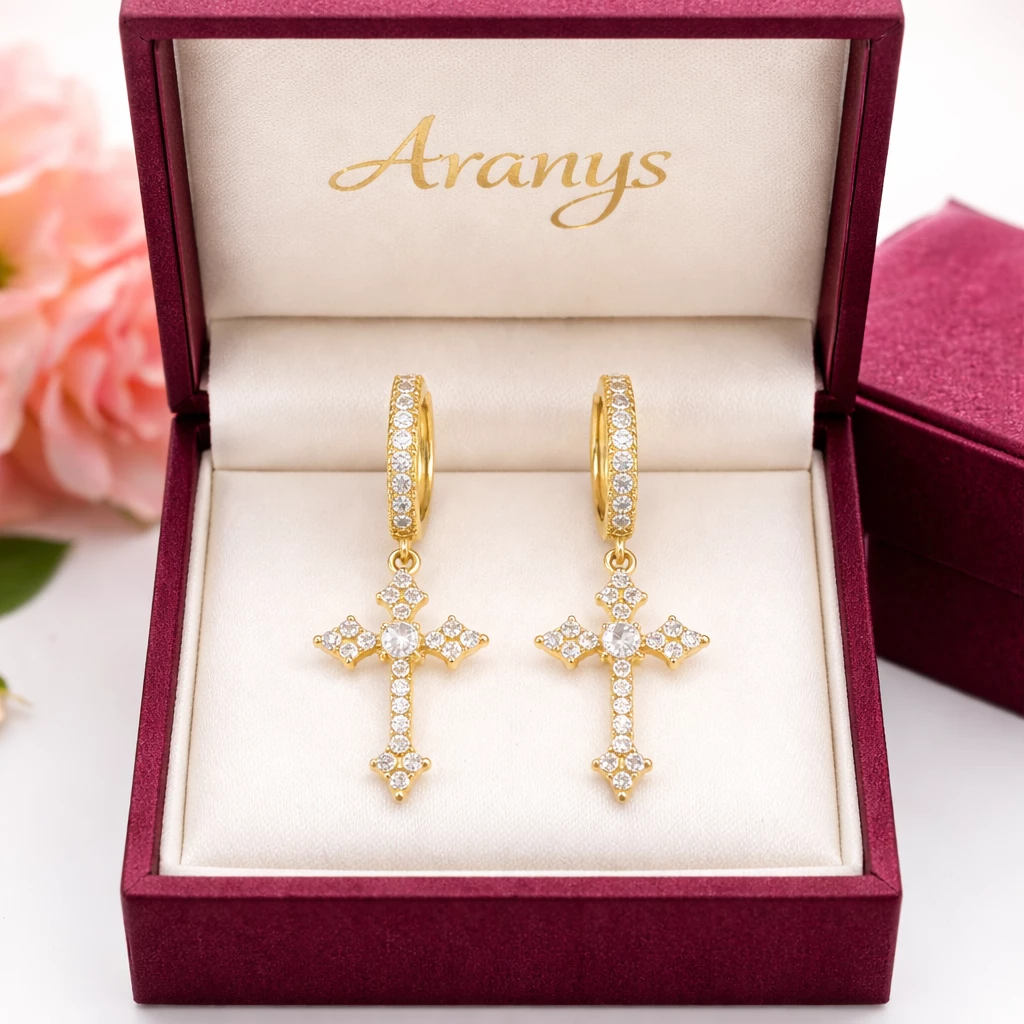 Zlacené náušnice křížky s moissanitem, které jsou dozdobeny malými zirkony. Moissanit - syntetický drahokam, který se vyrovná diamantu. Stříbro neobsahuje nikl ani jiné škodlivé kovy. Je hypoalergenní. Moissanite je vysoce odolný proti poškrábání a ani při každodenním nošení neztratí svůj třpyt . Alternativa k přírodnímu diamantu. V přírodě se vyskytuje velice vzácně, proto se vyrábí laboratorně.