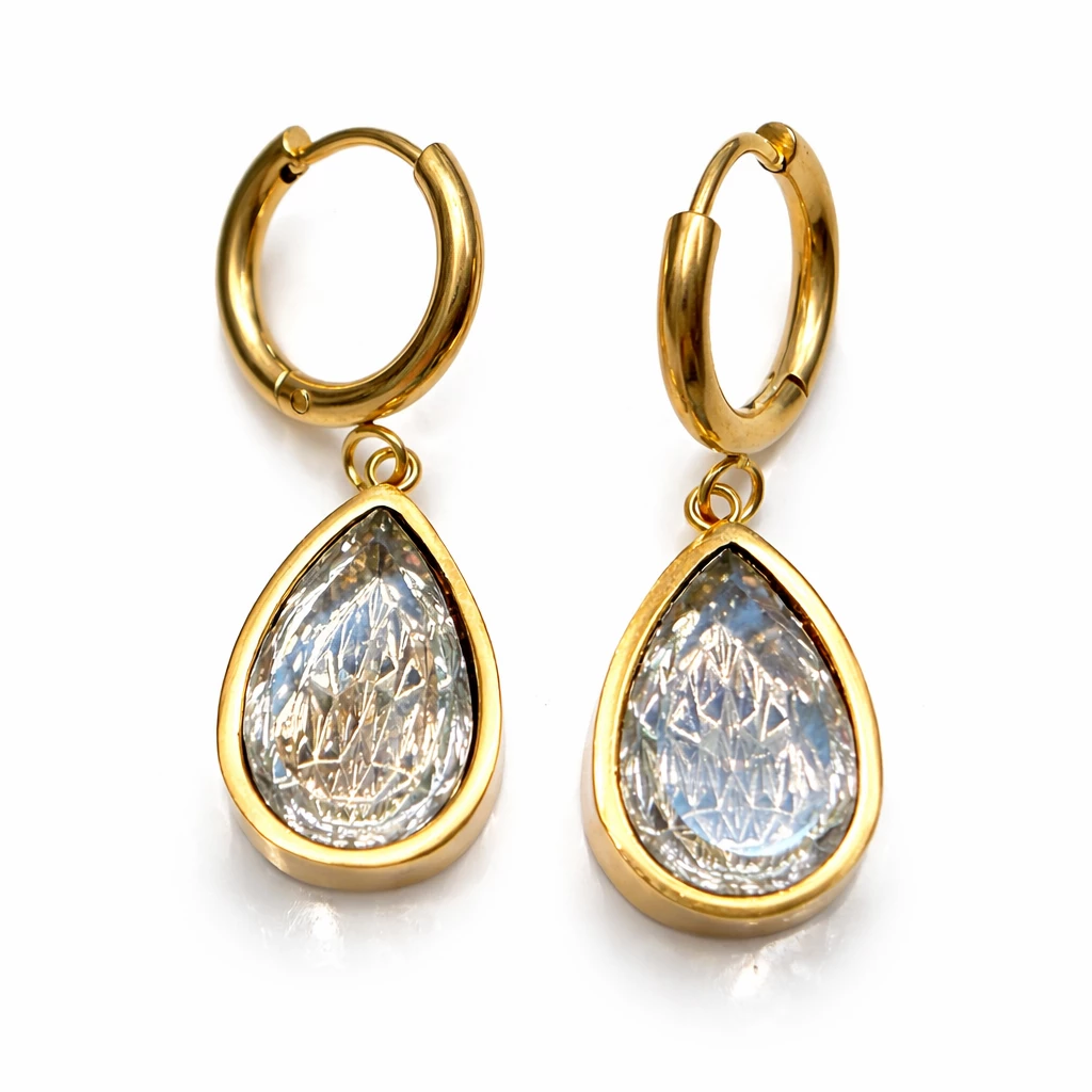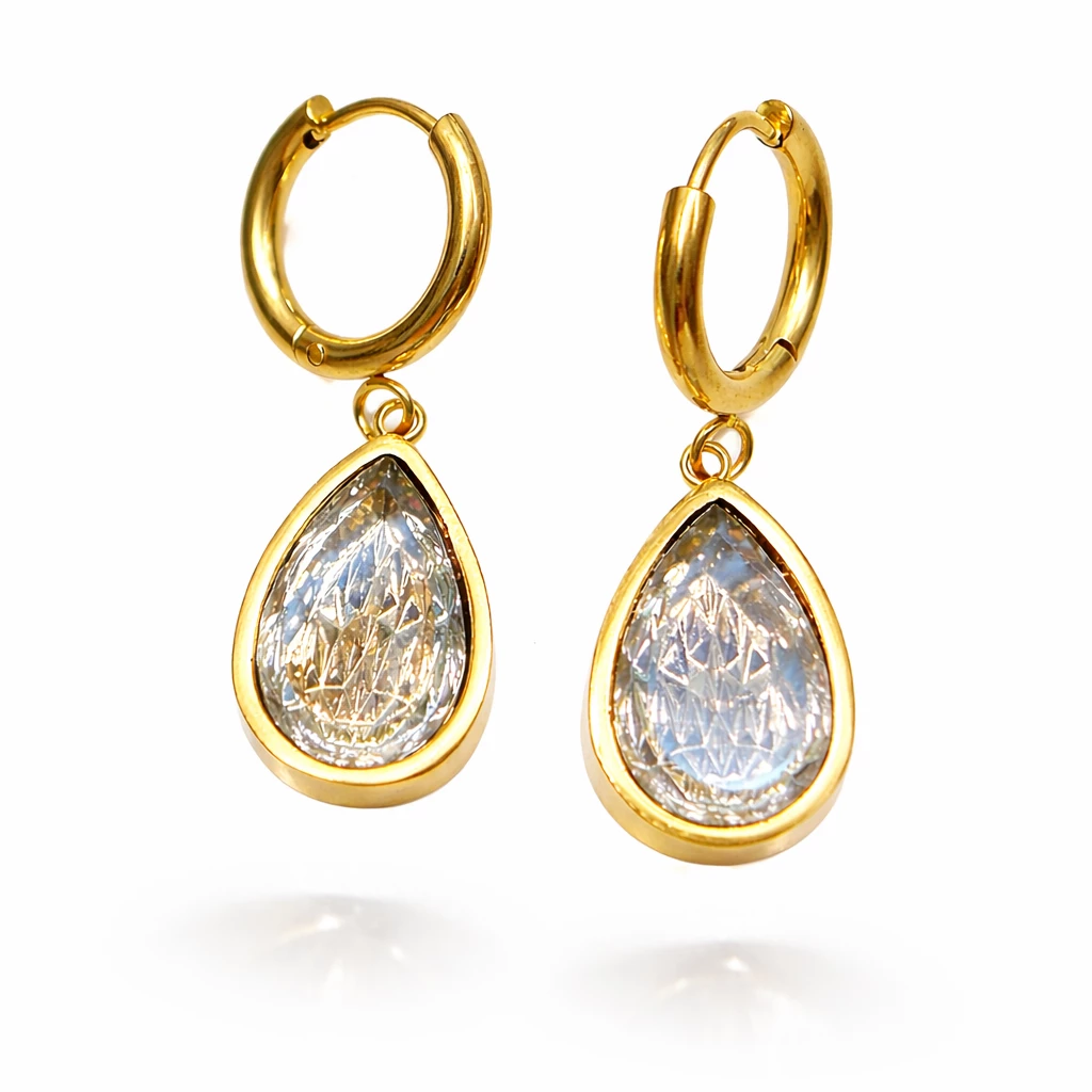 Tyto zlacené ocelové náušnice ve tvaru kapky zaujmou svým čistým designem a výrazným leskem precizně broušených krystalů. Minimalistické provedení působí elegantně a nadčasově, díky čemuž jsou náušnice ideální pro každodenní nošení i slavnostní příležitosti.