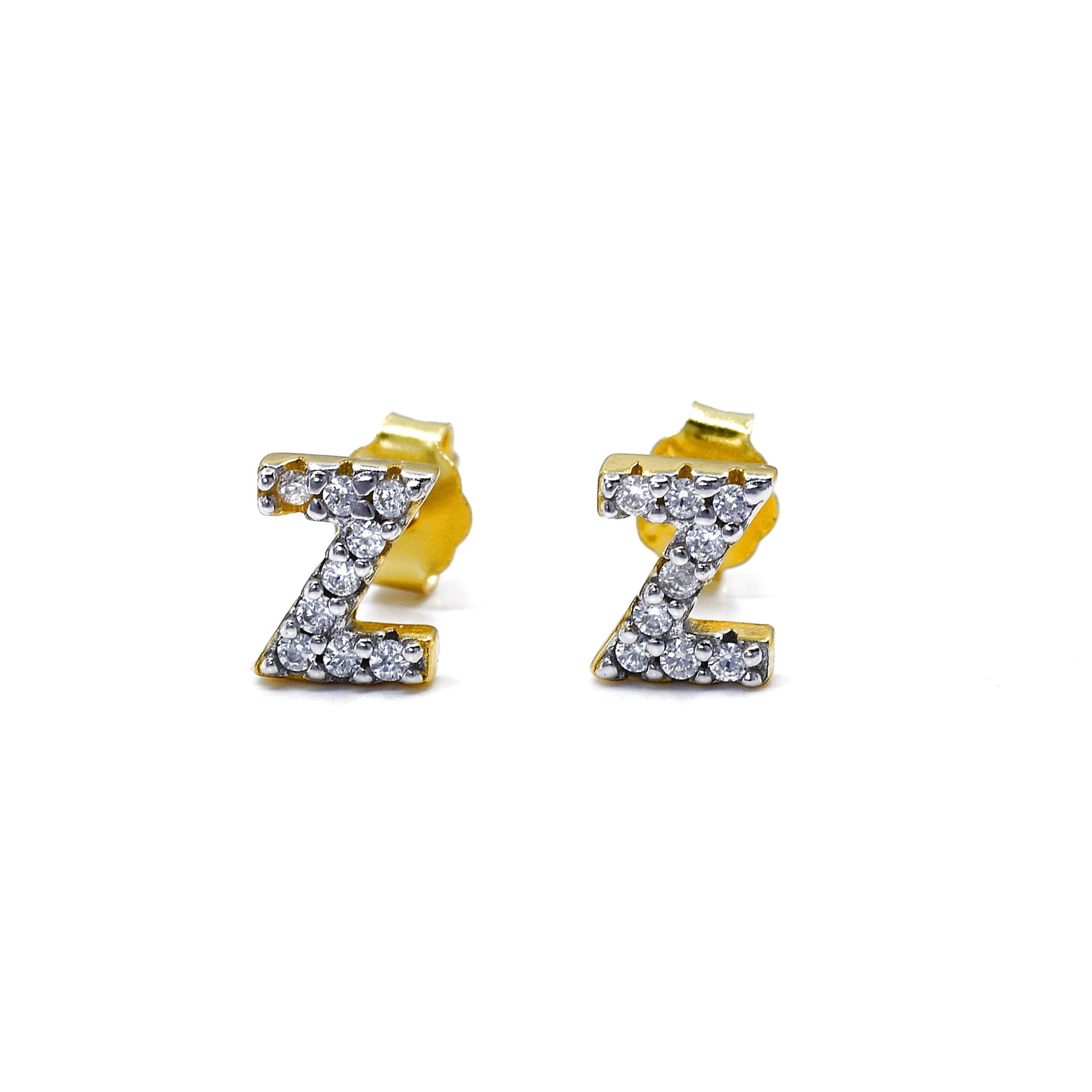 Elegantní stříbrné zlacené náušnice zdobené půvabnými zirkonky představují skvělý doplněk na den i do společnosti. V nabídce písmenka T, M a Z.