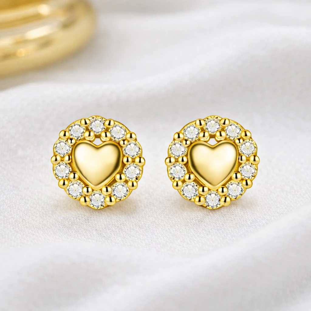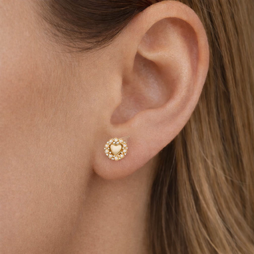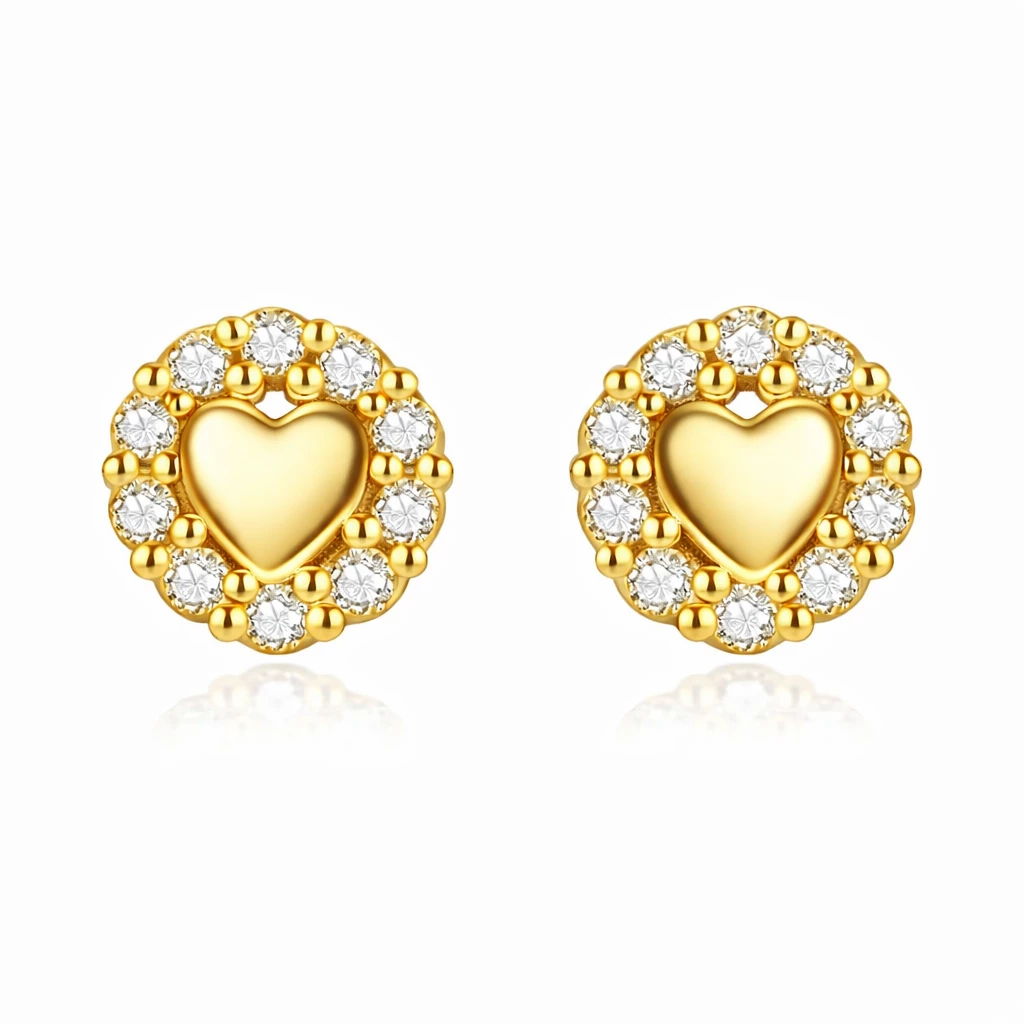 Stříbrné zlacené náušnice srdce se zirkony Miliora jsou vyrobeny z kvalitního Stříbra Ag 925/1000 a opatřeny zlacenou povrchovou úpravou, která jim dodává teplý zlatý odstín. Jemné zirkony lemující srdce vytvářejí zářivý efekt a podtrhují romantický charakter šperku.