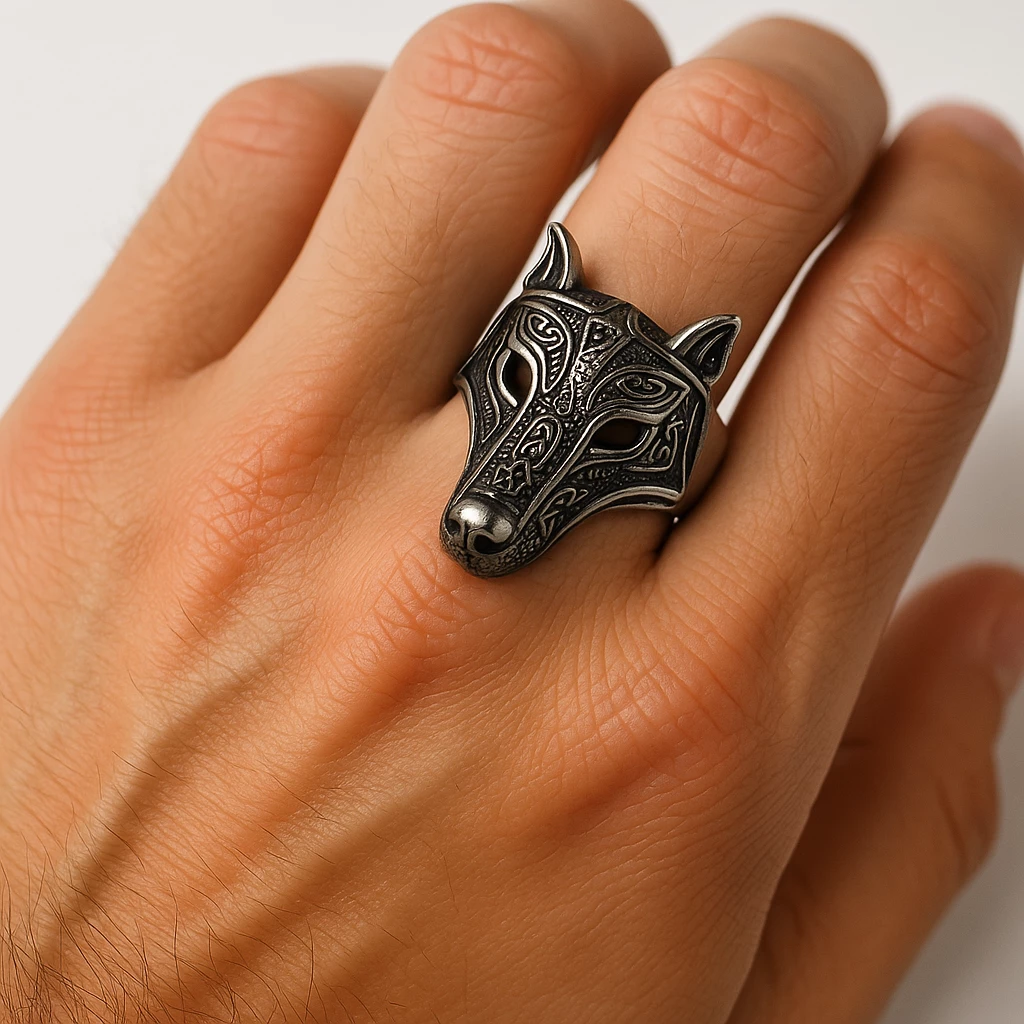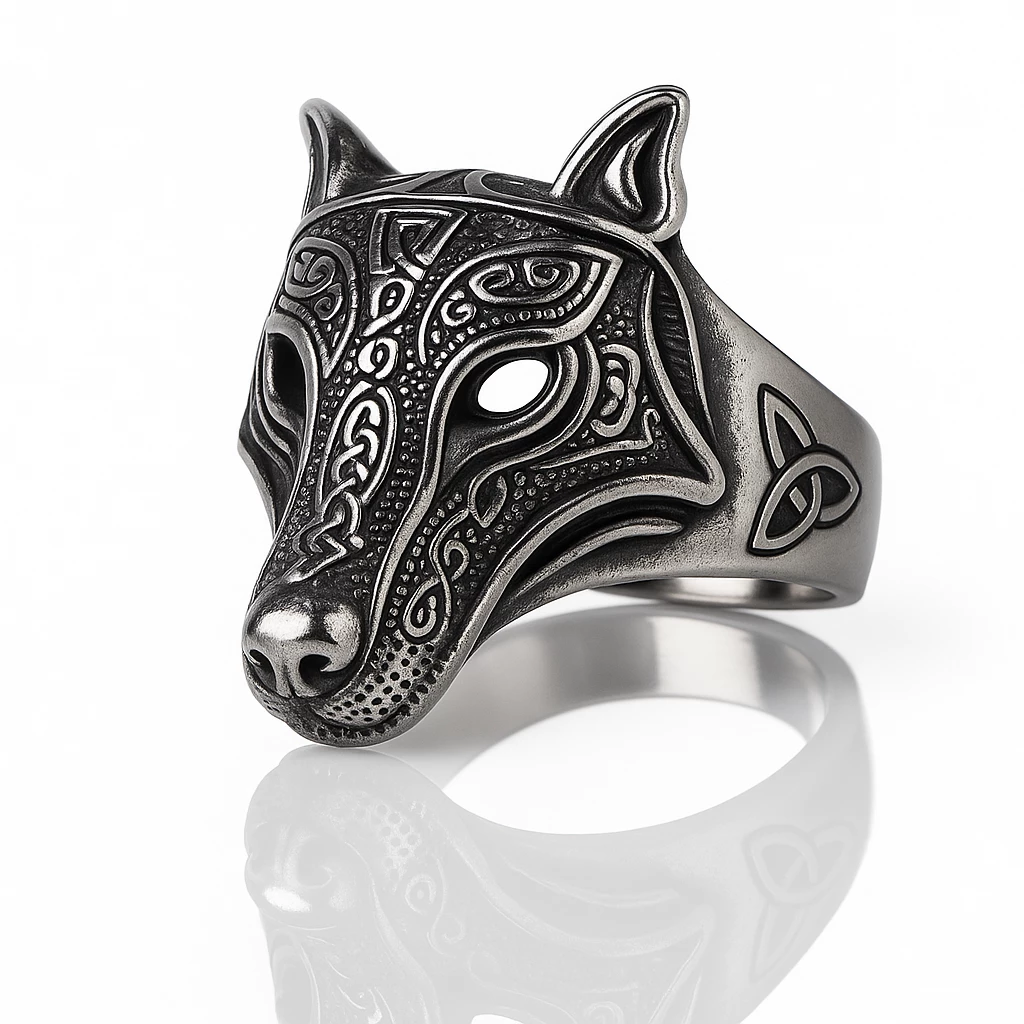 Masivní prsten z chirurgické oceli s motivem vikingského vlka je vhodný pro muže i ženy. Hlava vlka je tvořena zajímavými ornamenty. Potěší všechny milovníky zvířat, historie a severských zemí. Vlk znázorňuje vytrvalost, sílu, neústupnost a pomáhá nám překonat žal a smutek.