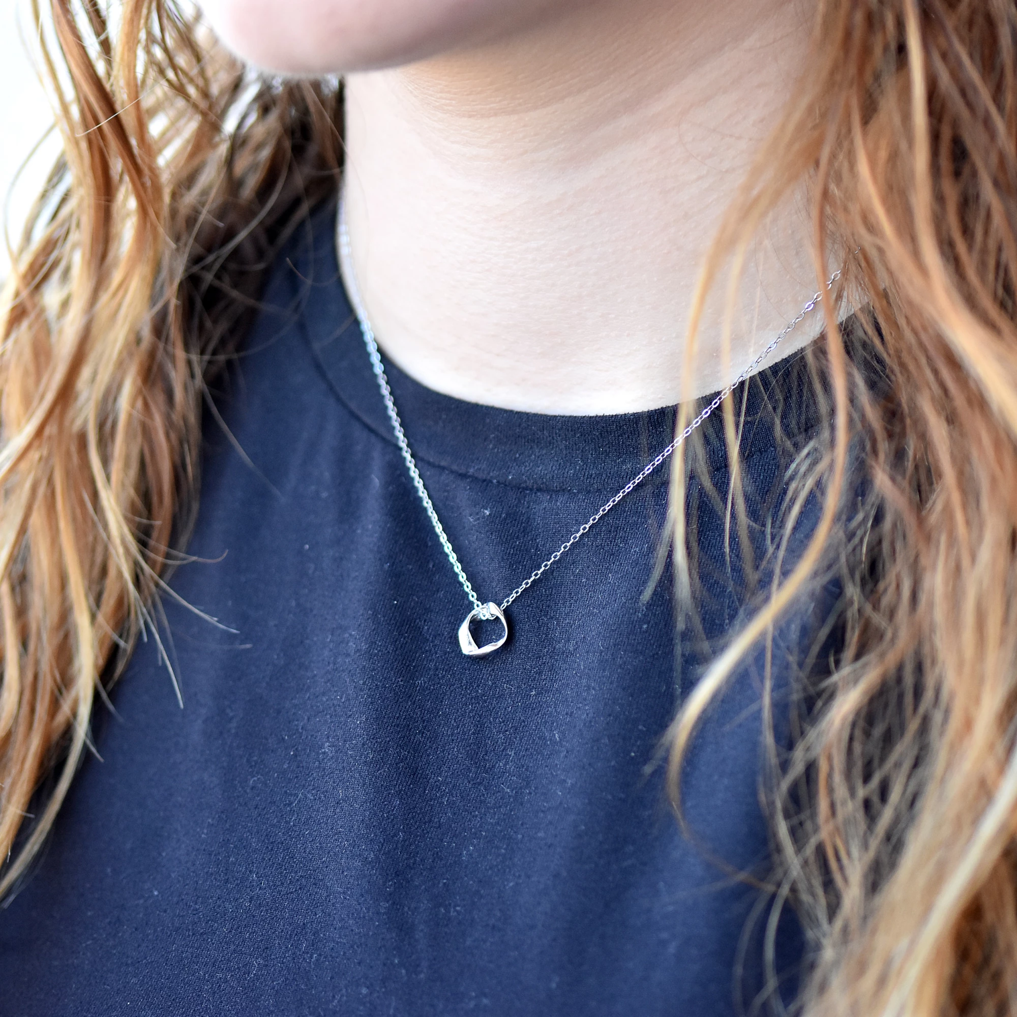 Stříbrný náhrdelník s půvabným motivem zvlněného kroužku je zárukou elegance. Decentní a jednoduchý šperk využijete při každodenním nošení. Krásně jej zkombinujete s dalšími stříbrnými šperky z naší nabídky.