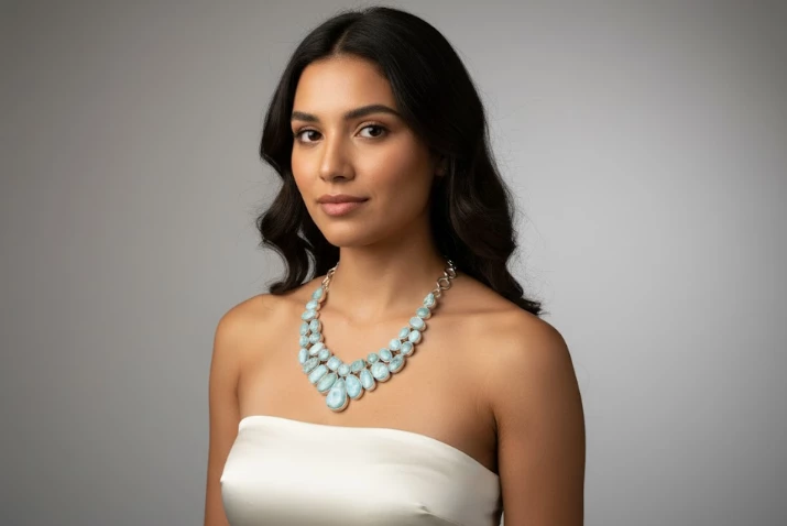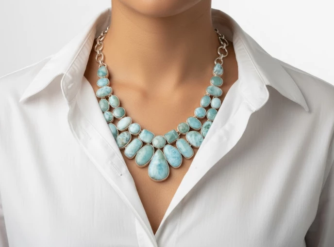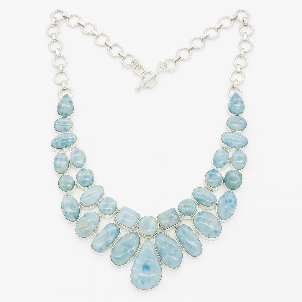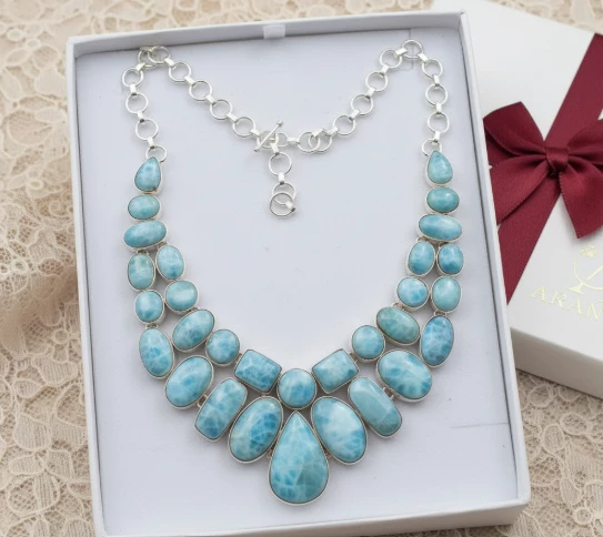 Originální exkluzivní stříbrný náhrdelník s dominujícími larimary je dokonalým šperkem pro ženy, které mají v oblibě jedinečné, atraktivní kousky.