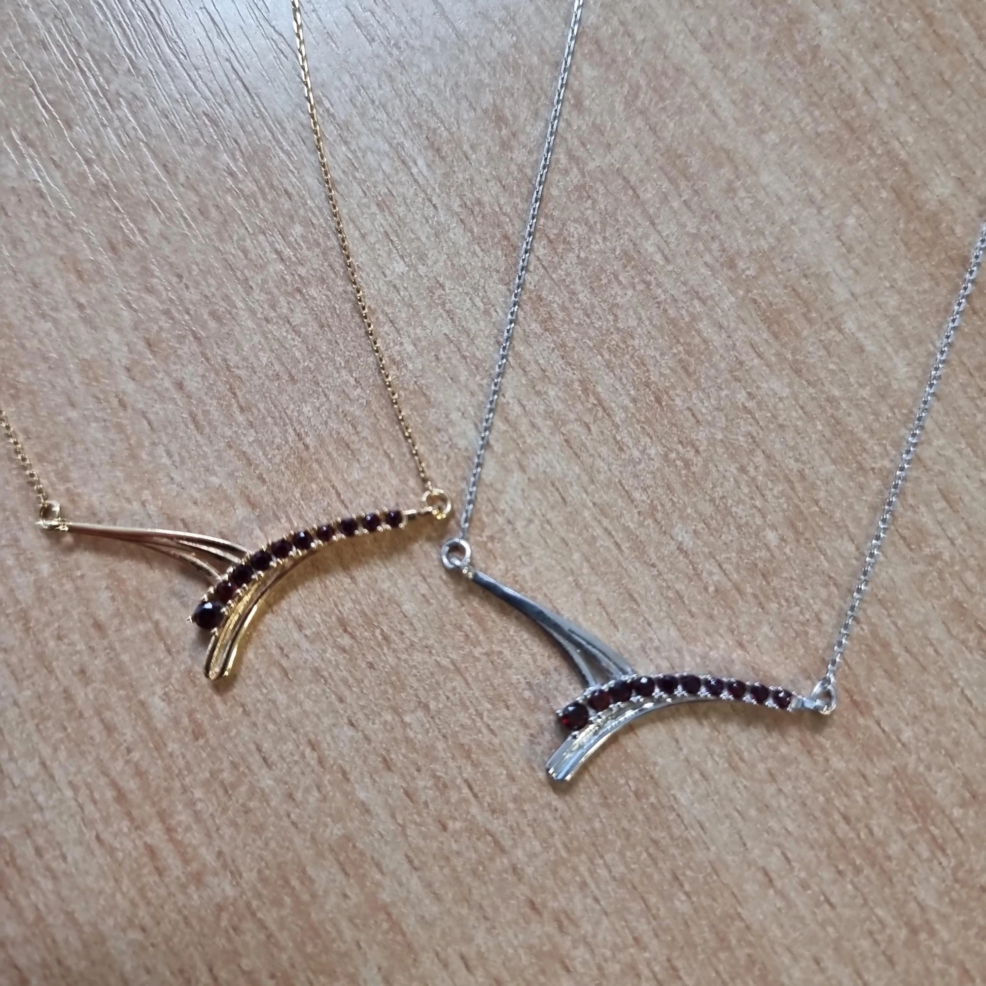 Stříbrný náhrdelník osázený broušenými českými granáty. Náhrdelník je opatřen prodlužovacím 3 cm řetízkem, díky kterému si jeho konečnou délku sama zvolíte. Nabízíme jak v rhodiované, tak zlacené variantě. Vámi preferovanou variantu si zvolíte ve filtru.