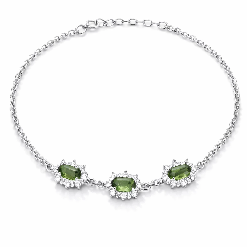 Stříbrný náramek s vltavínem Princess. Luxusní náramek s vltavíny a zirkony jen u nás!