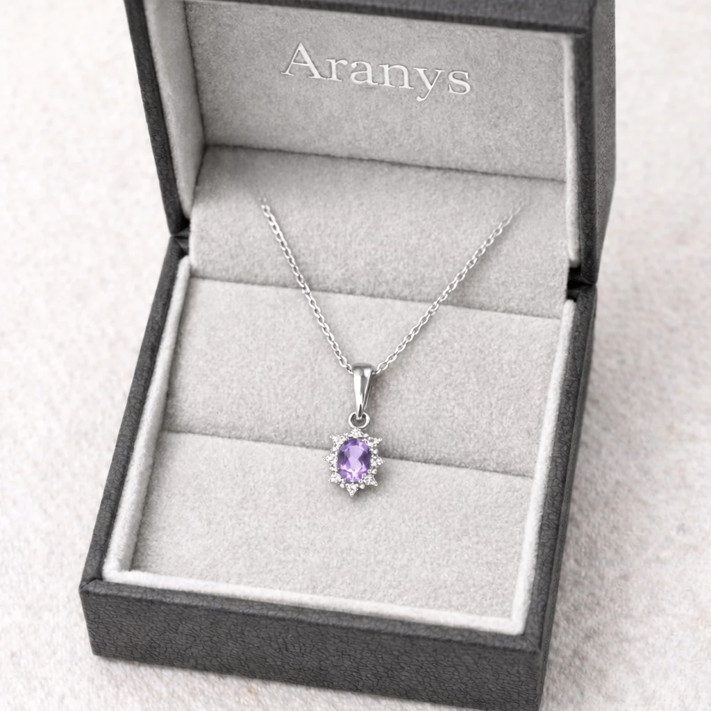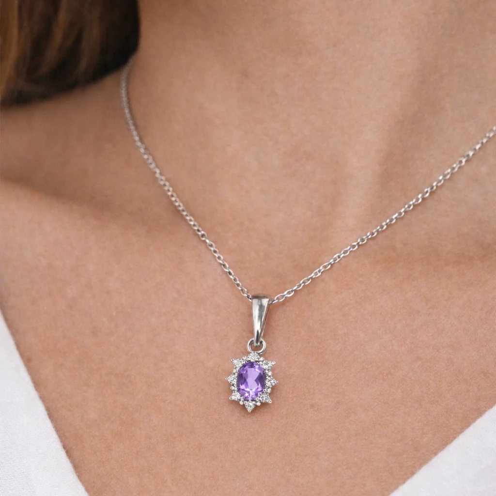 Stříbrný přívěsek kytička s ametystem Amalia je jemným a elegantním šperkem, který v sobě spojuje květinovou lehkost, precizní zpracování a harmonii přírodních kamenů.
