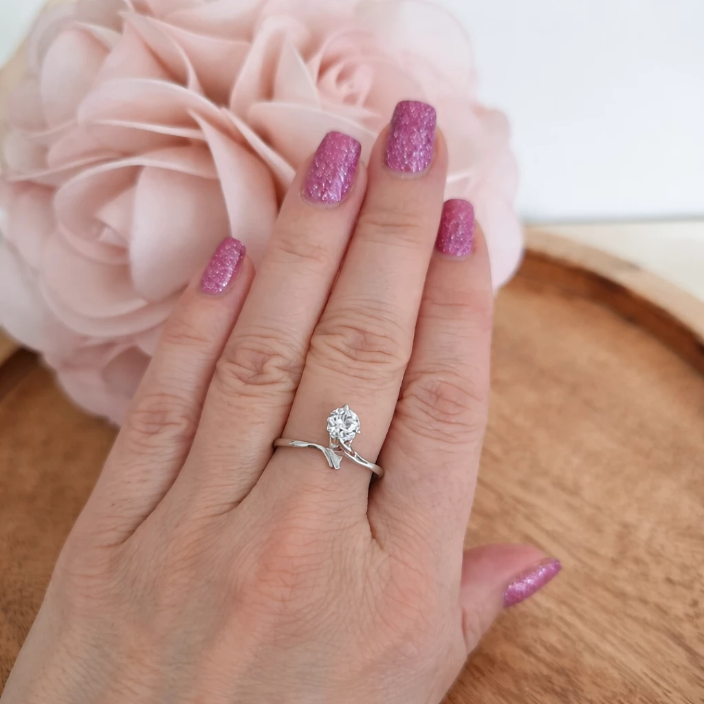 Jemný stříbrný prsten se zirkonem v minimalistickém provedení, který podtrhne přirozenou eleganci a hodí se ke každému stylu.